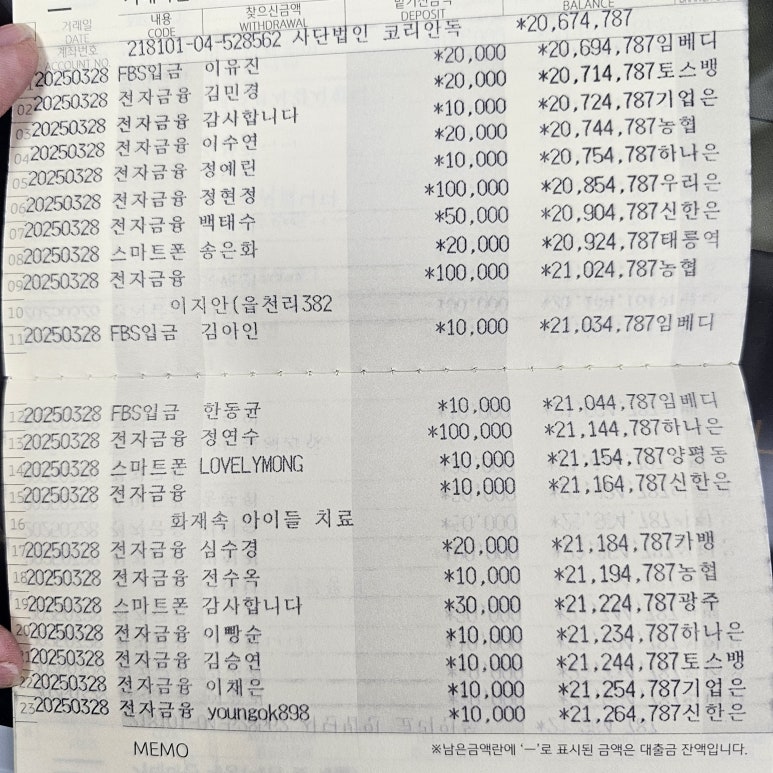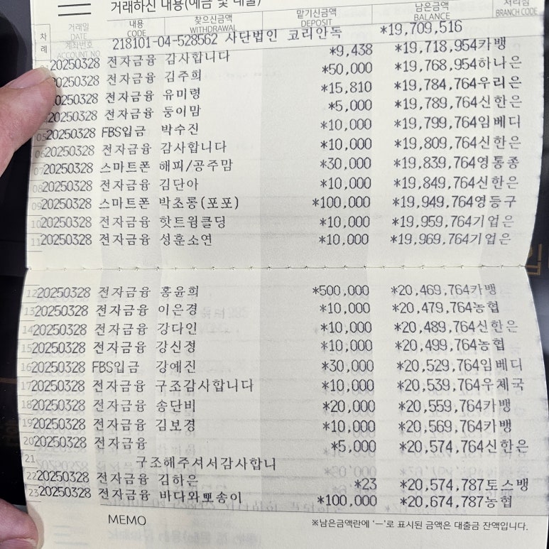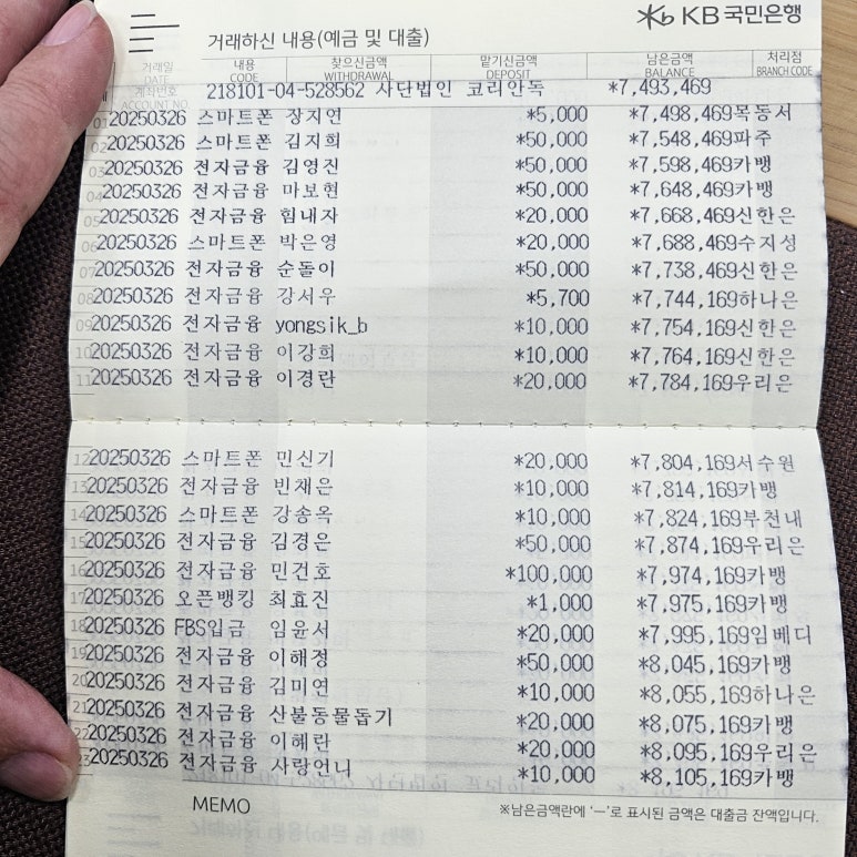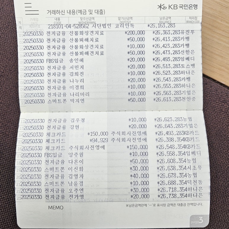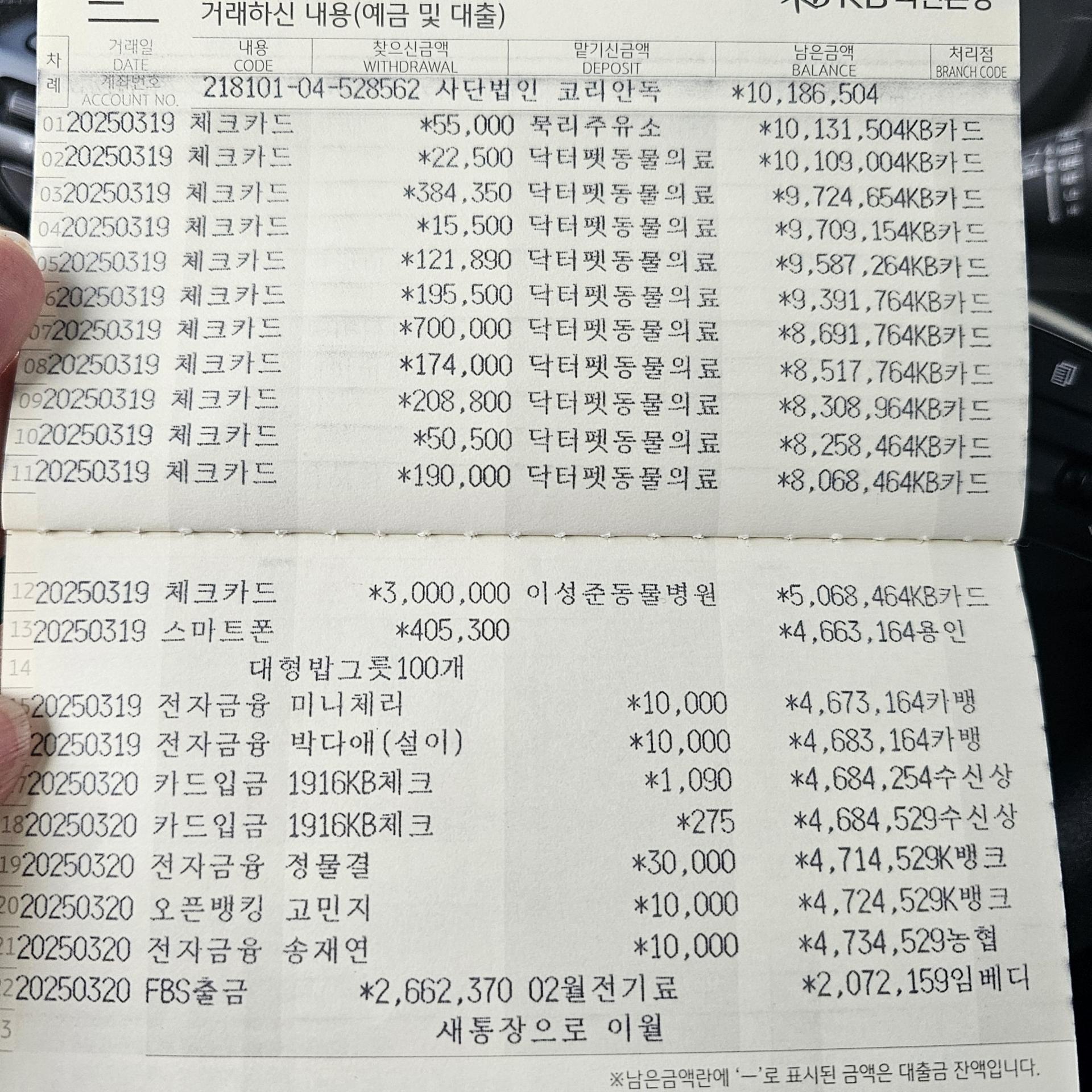 사단법인 코리안독스 2025년 3월 통장내역 & 회계보고