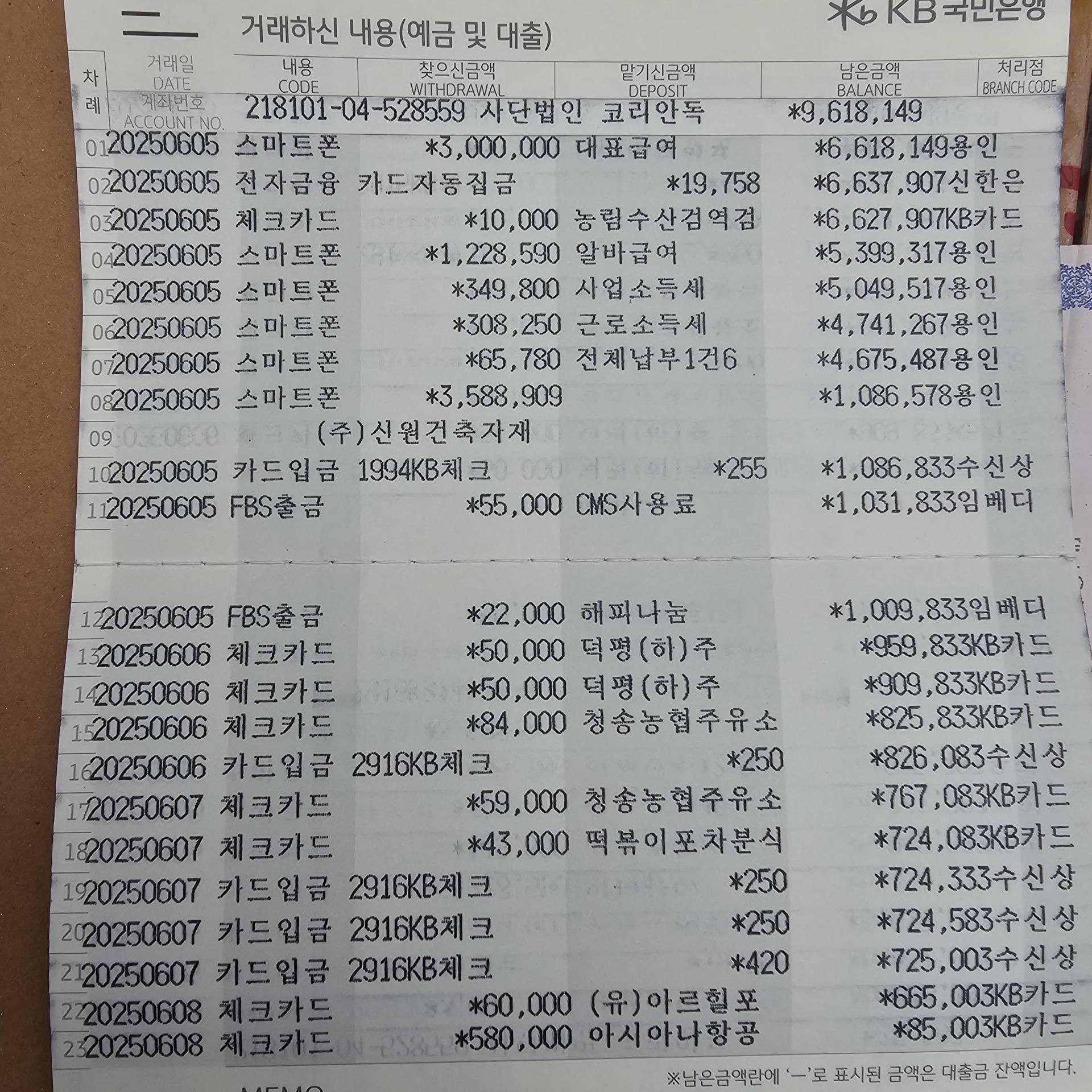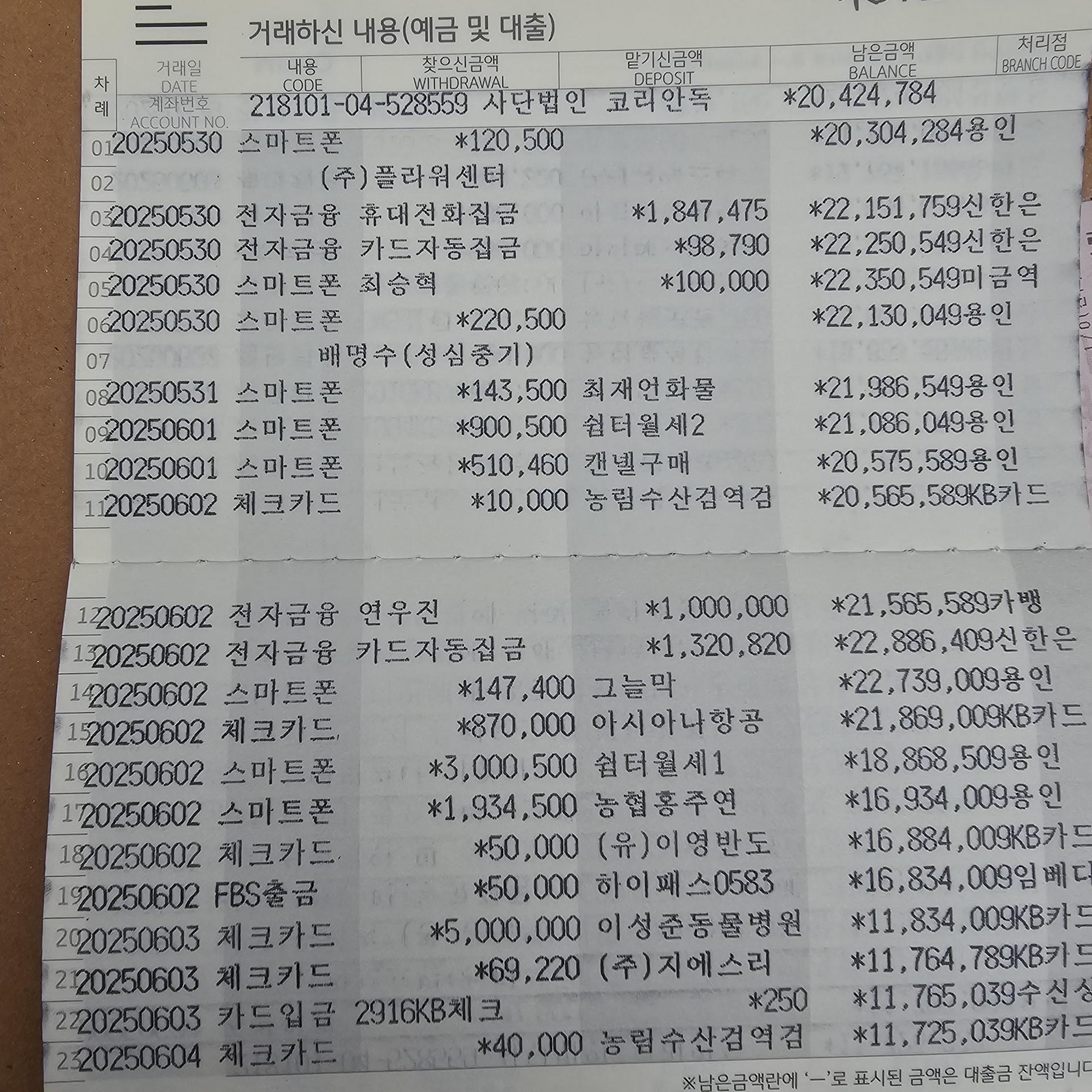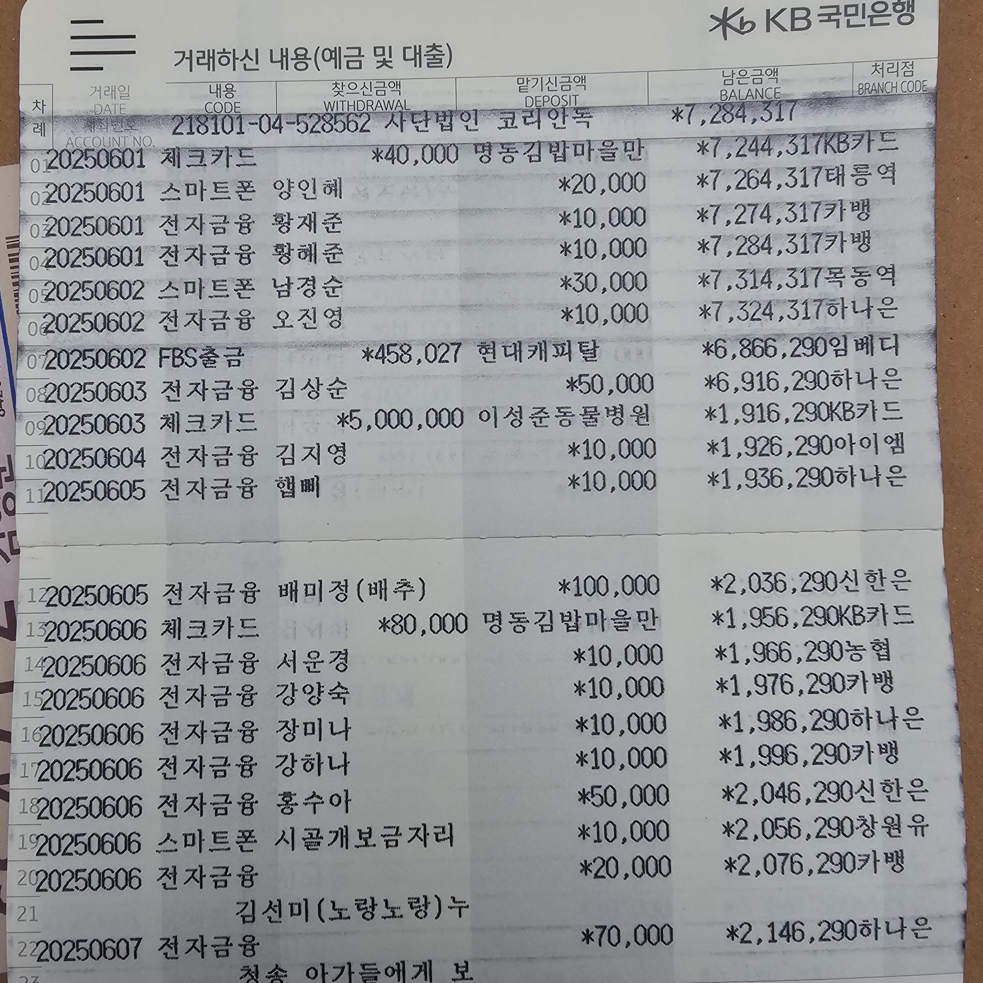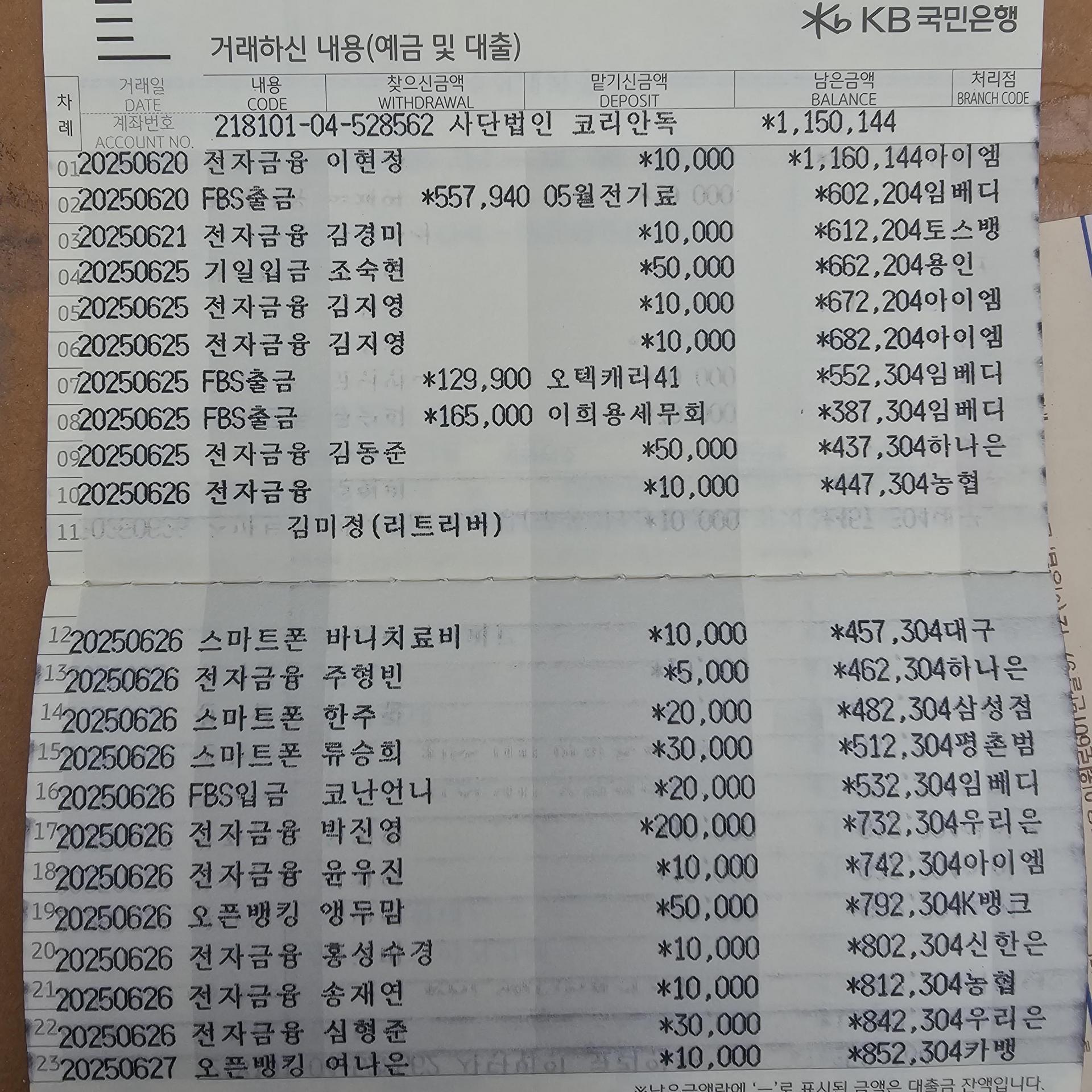 사단법인 코리안독스 2025년 6월 통장내역 & 회계보고