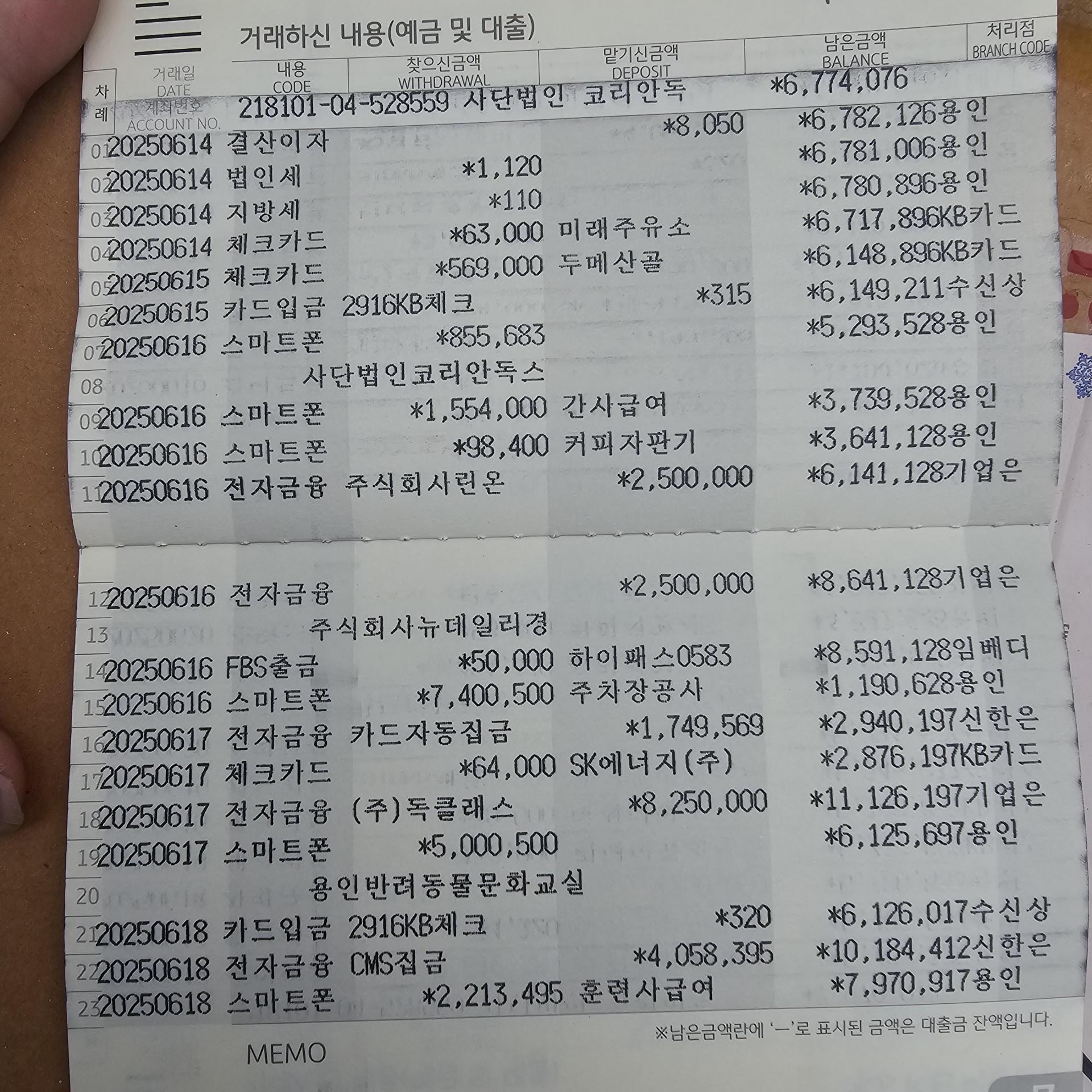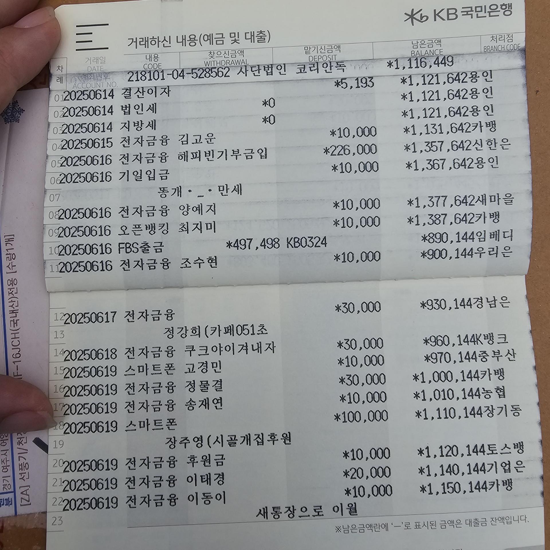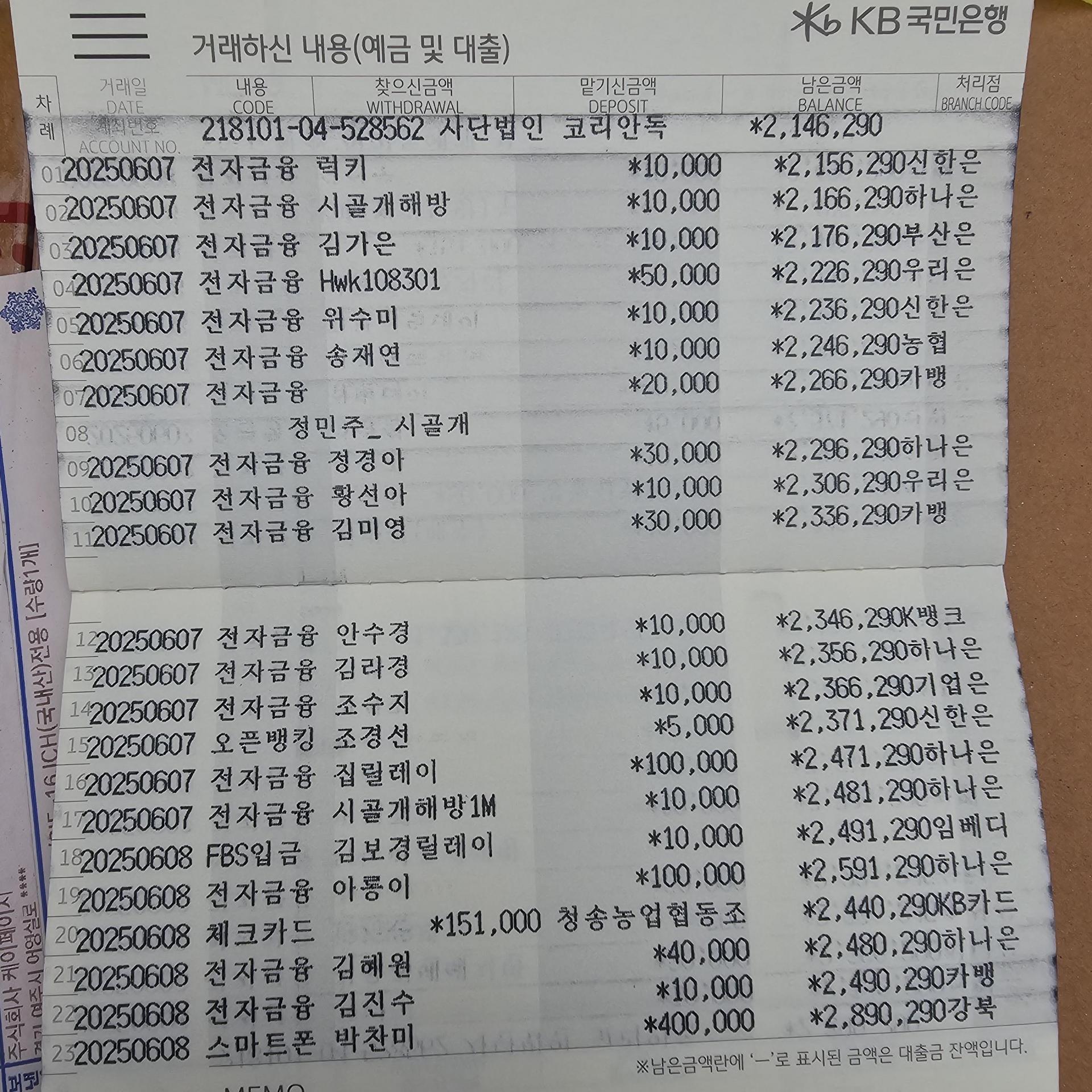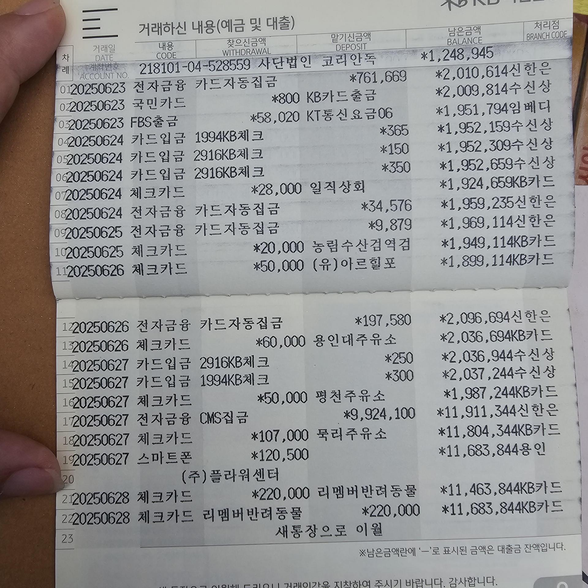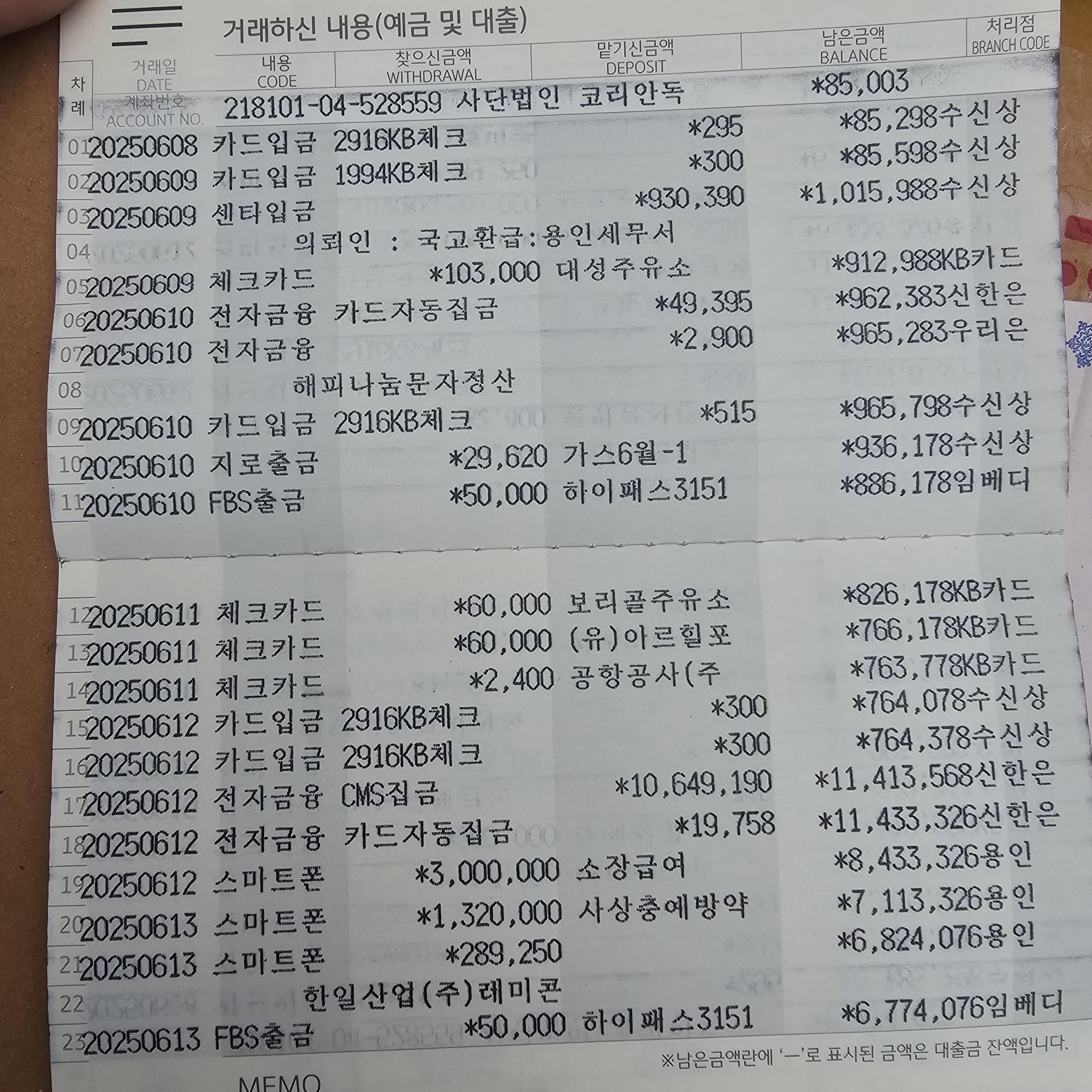 사단법인 코리안독스 2025년 6월 통장내역 & 회계보고