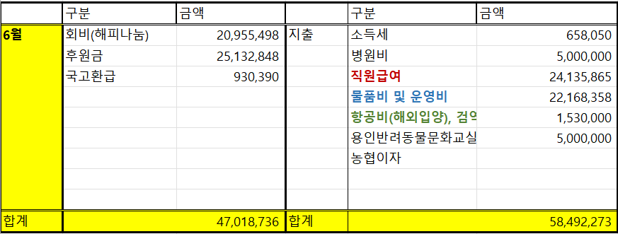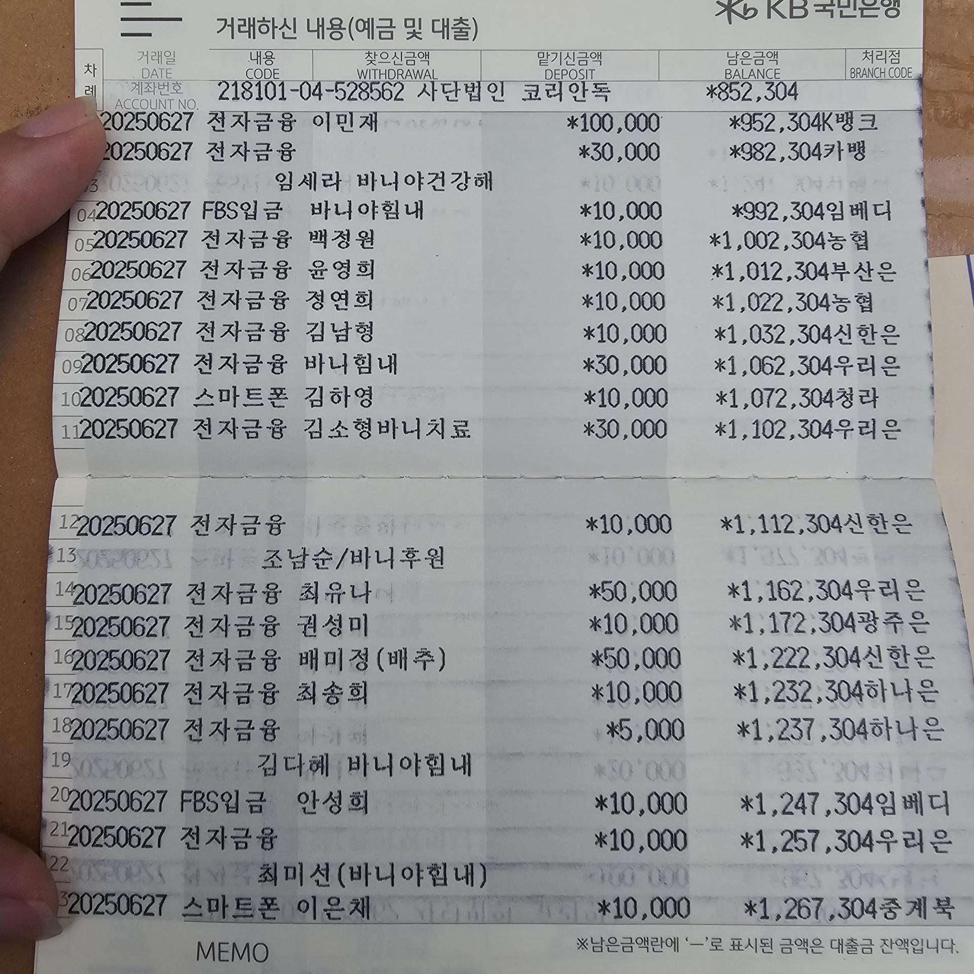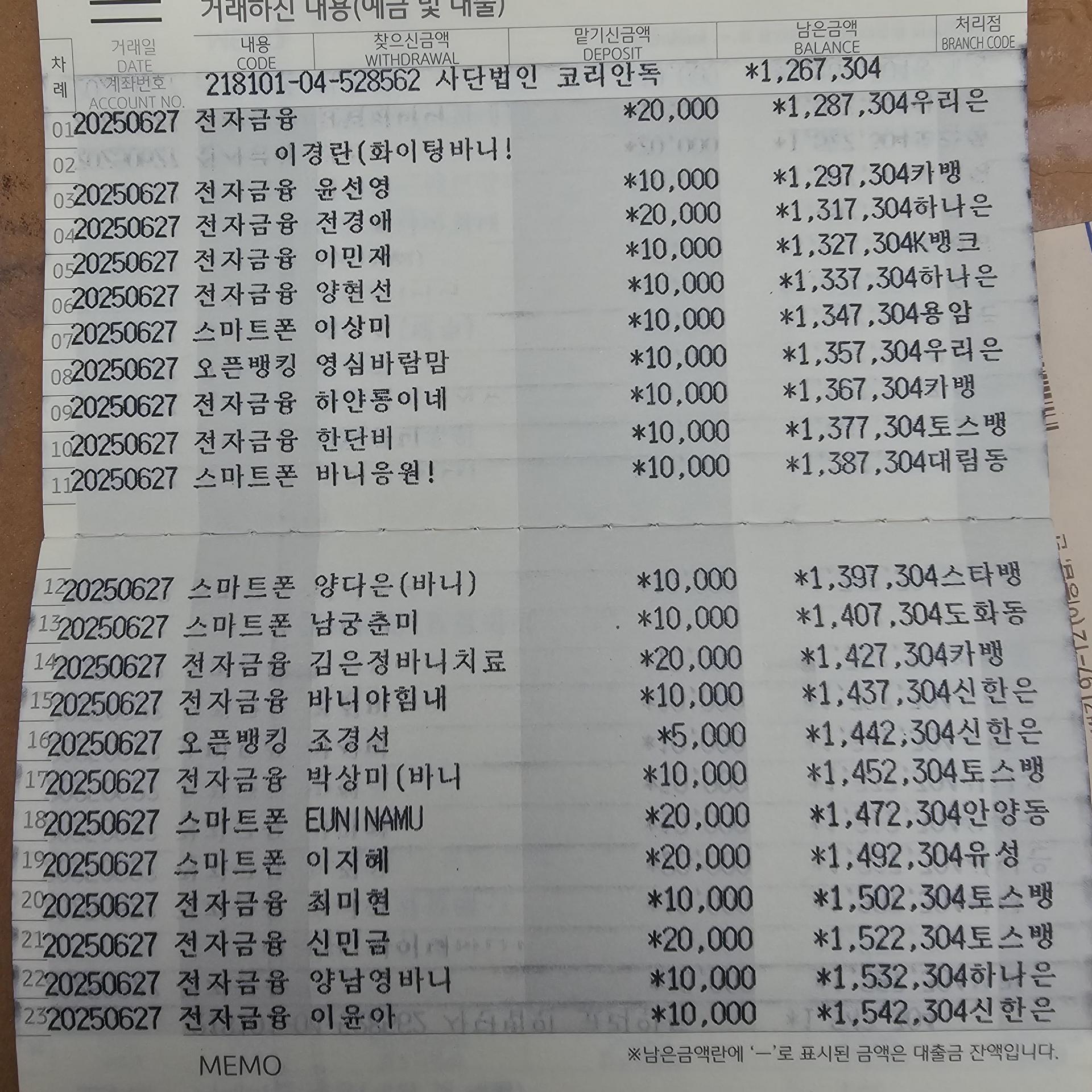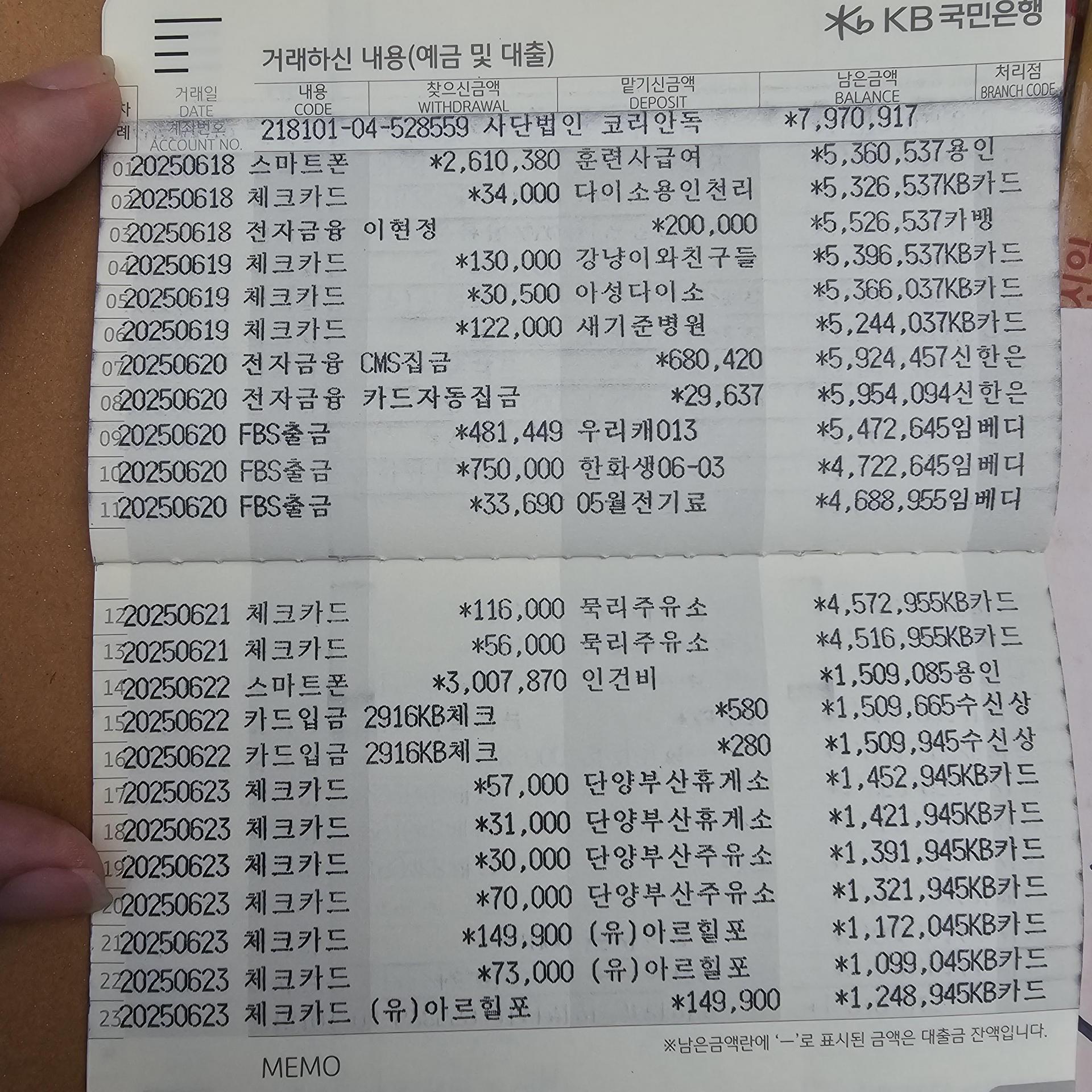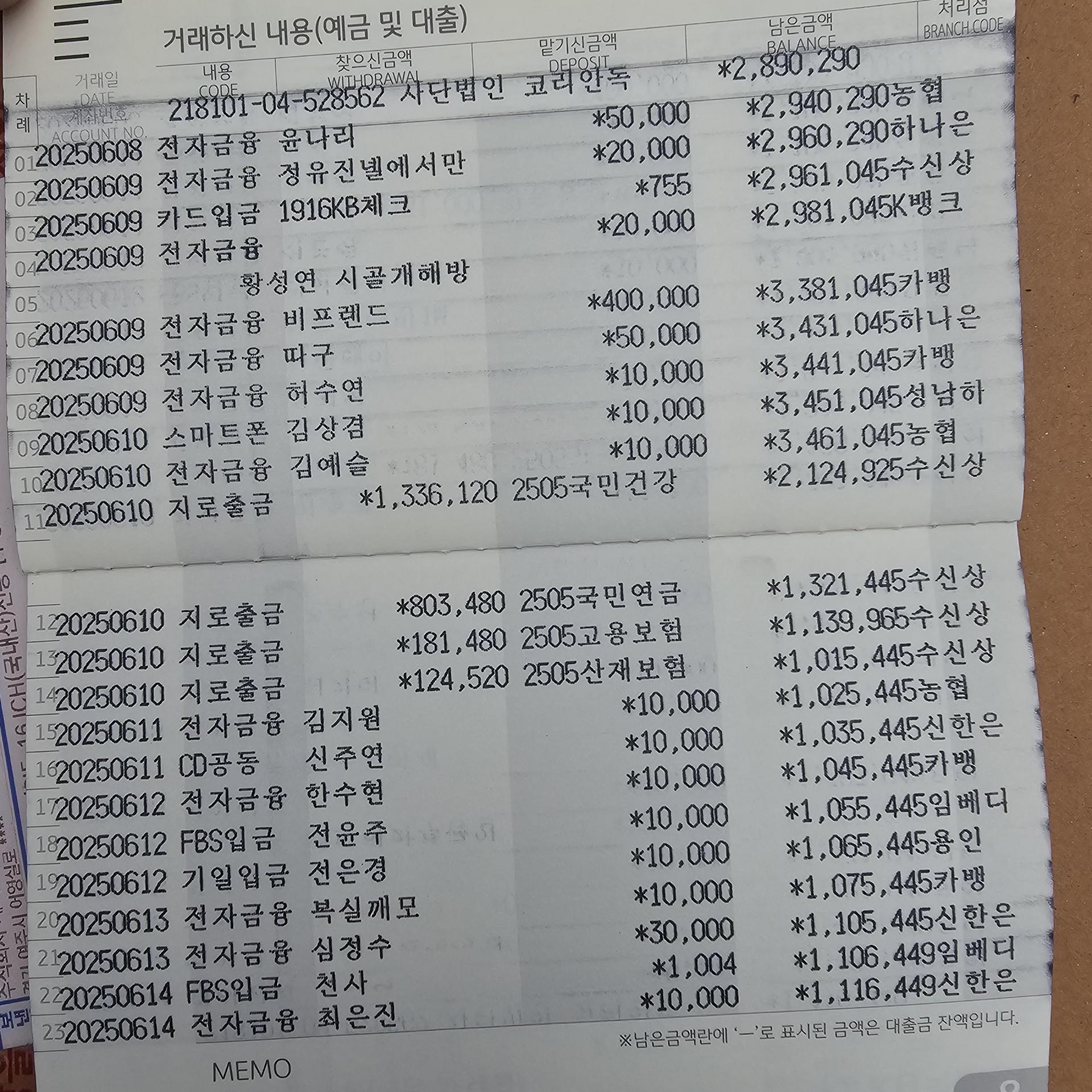 사단법인 코리안독스 2025년 6월 통장내역 & 회계보고