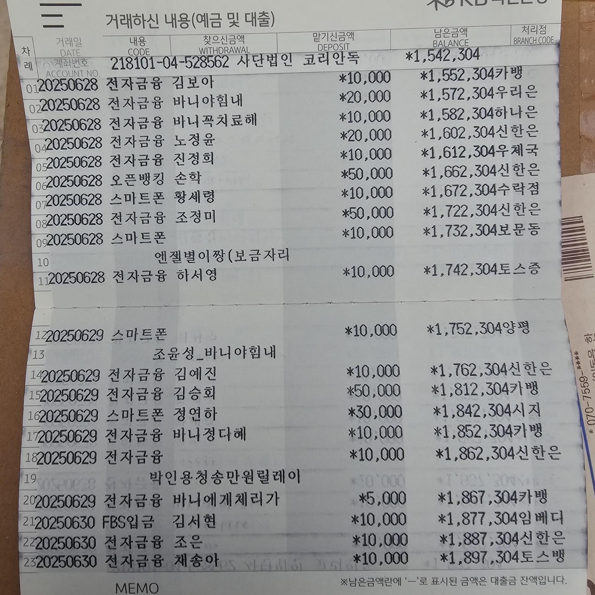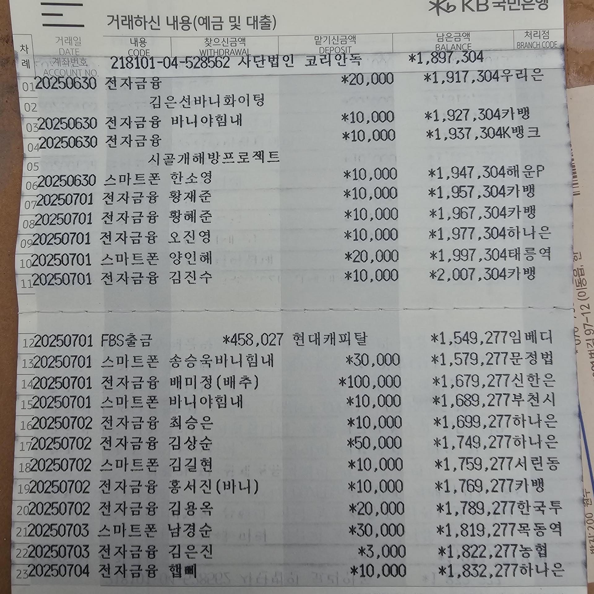 사단법인 코리안독스 2025년 7월 통장내역 & 회계보고