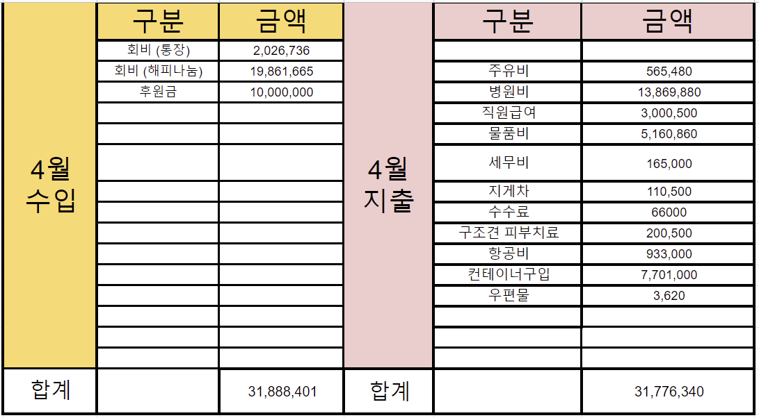 사단법인 코리안독스 2022년 4월 통장내역 & 회계보고