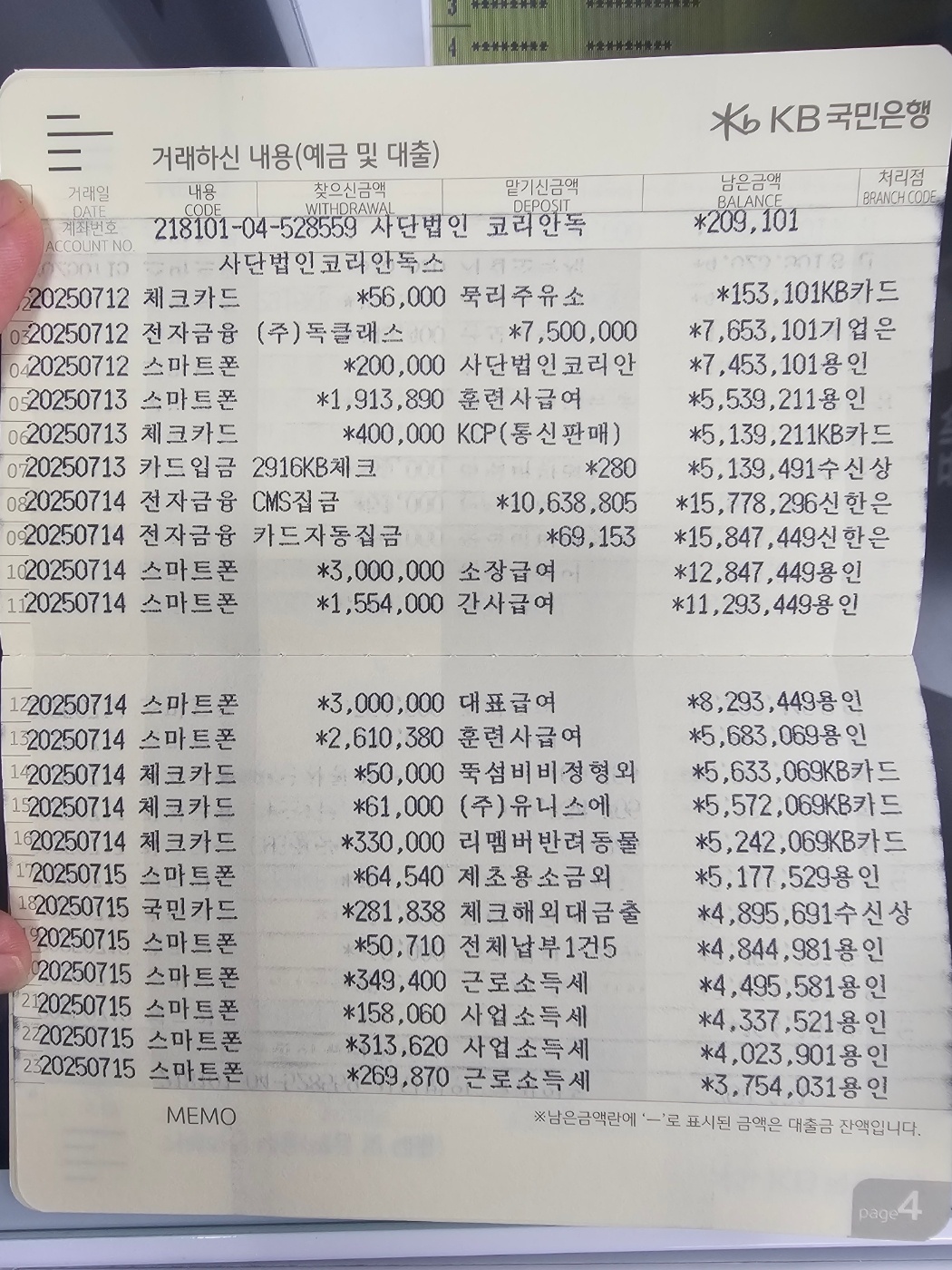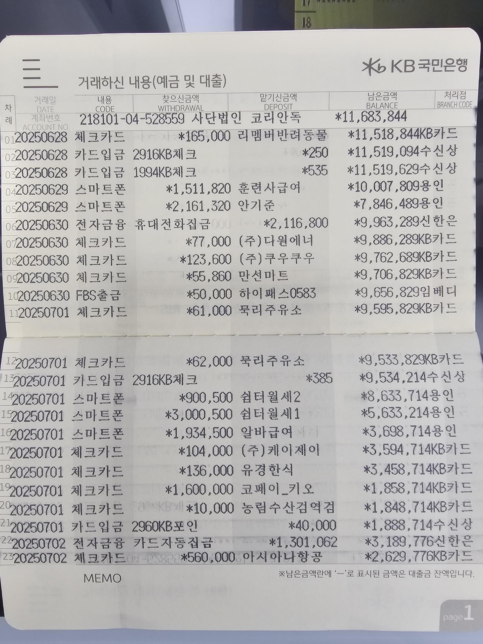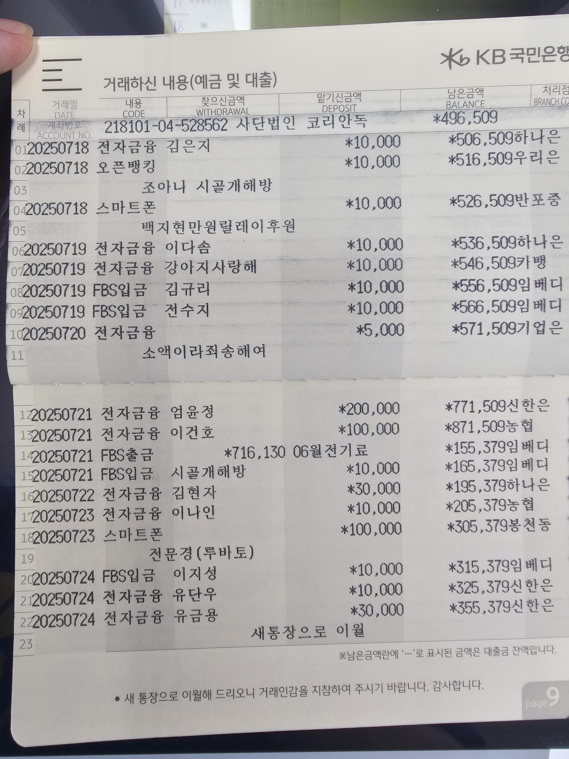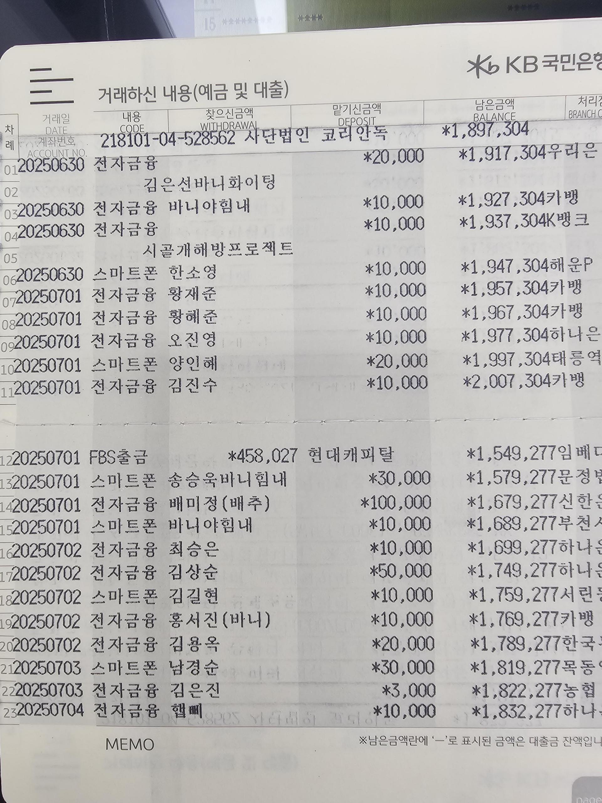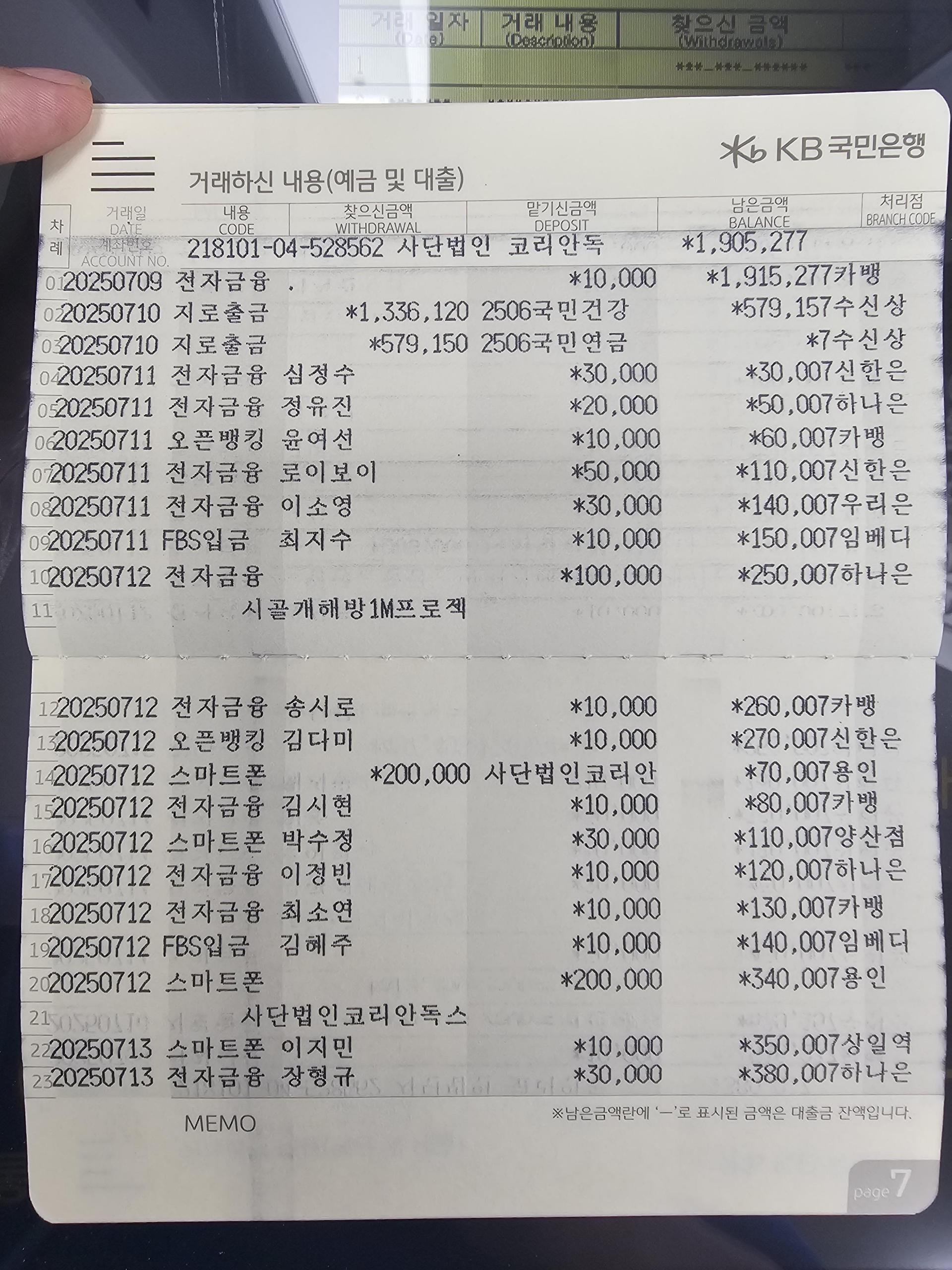 사단법인 코리안독스 2025년 7월 통장내역 & 회계보고