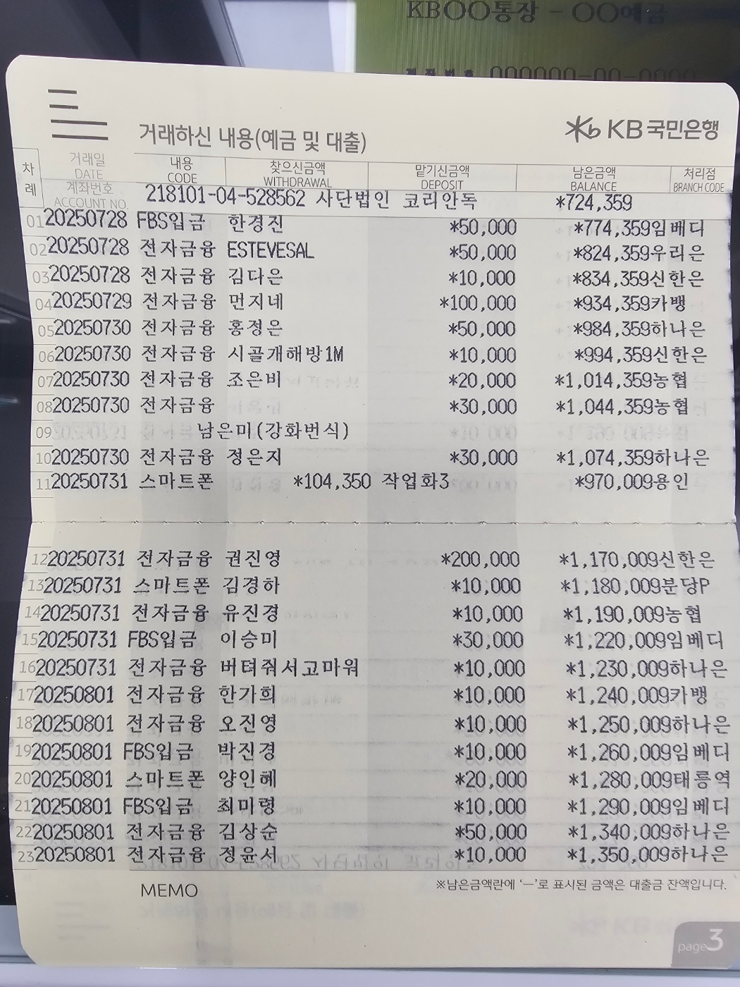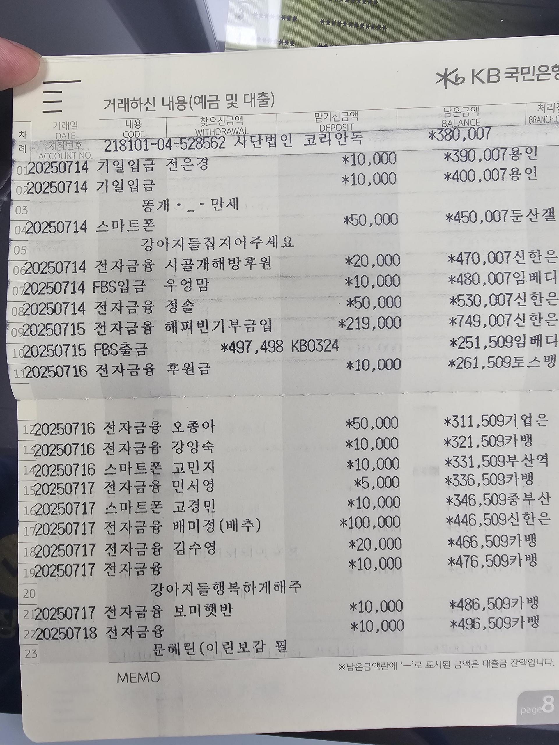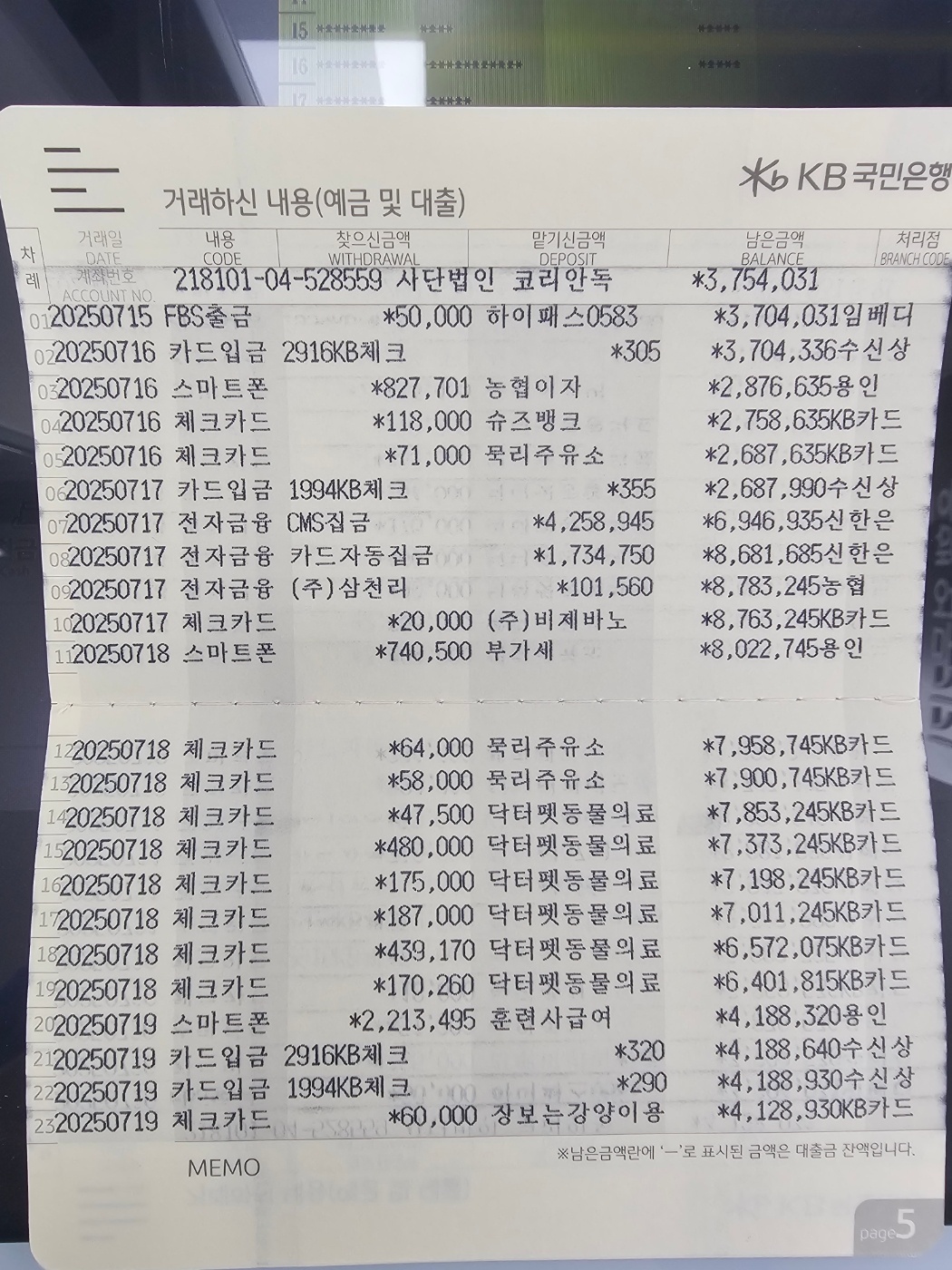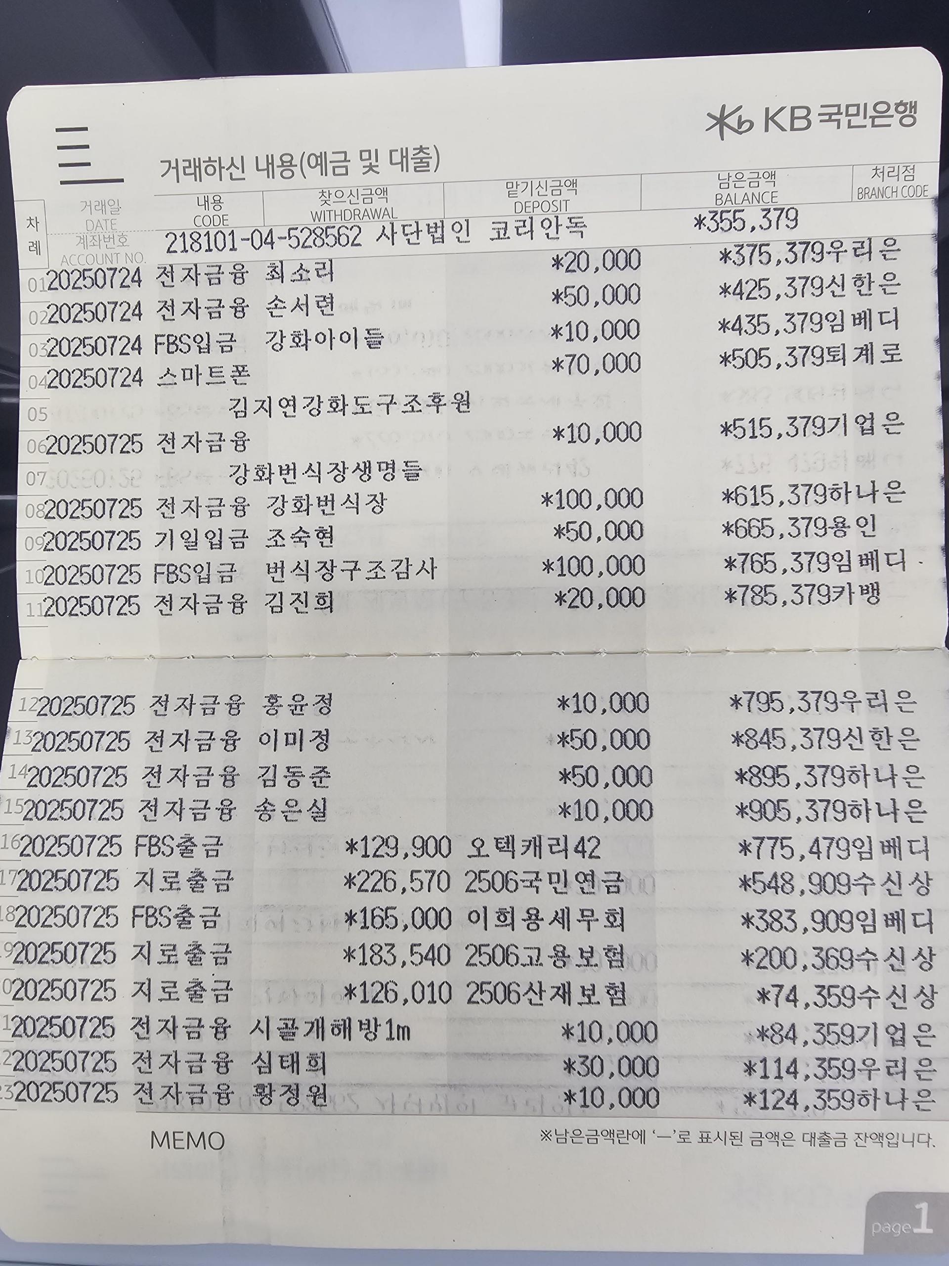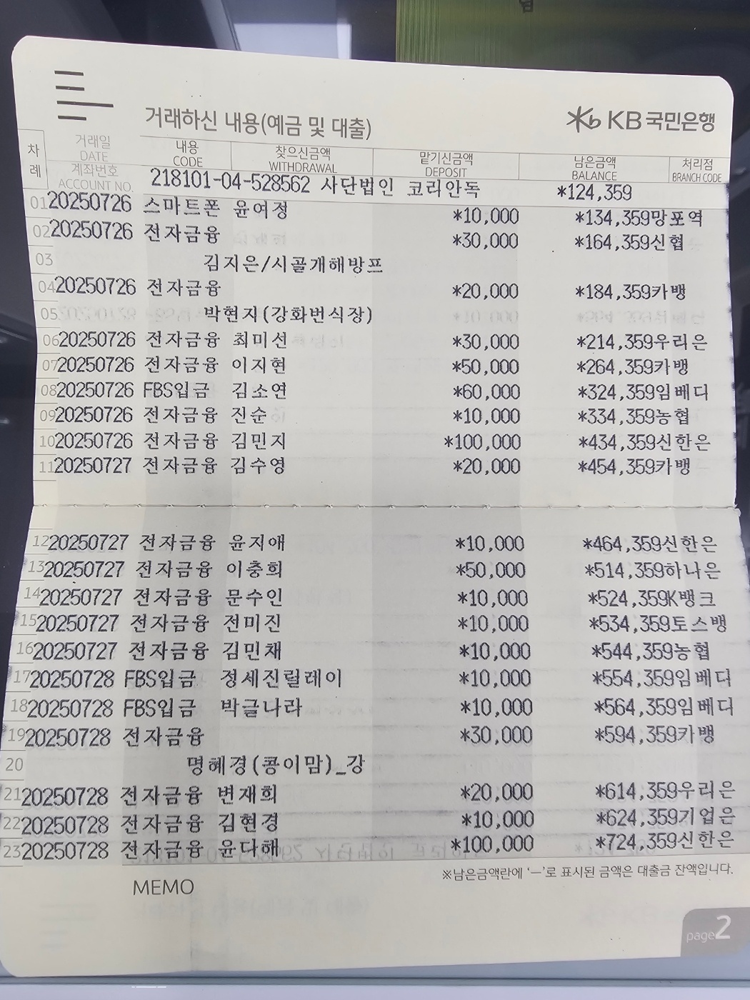 사단법인 코리안독스 2025년 7월 통장내역 & 회계보고