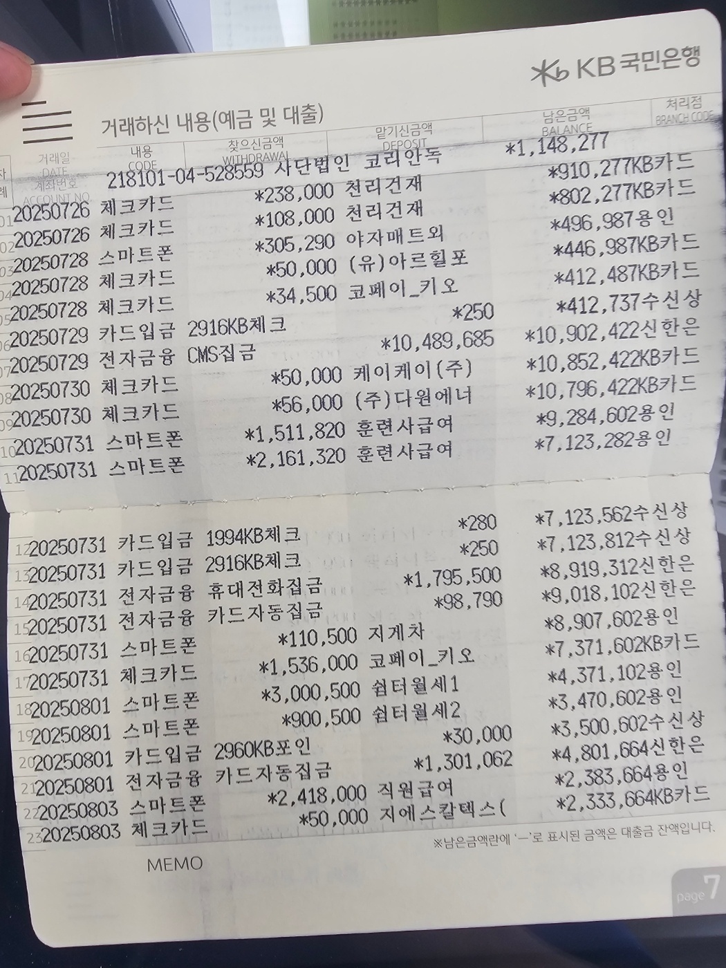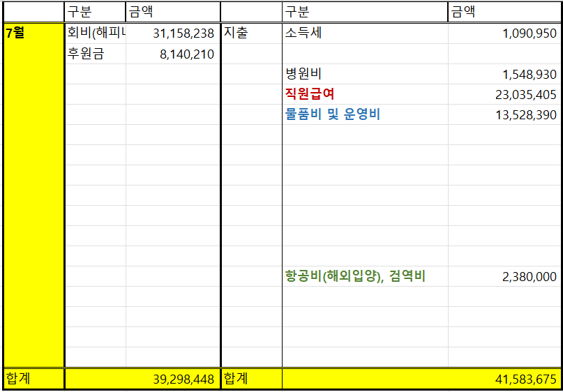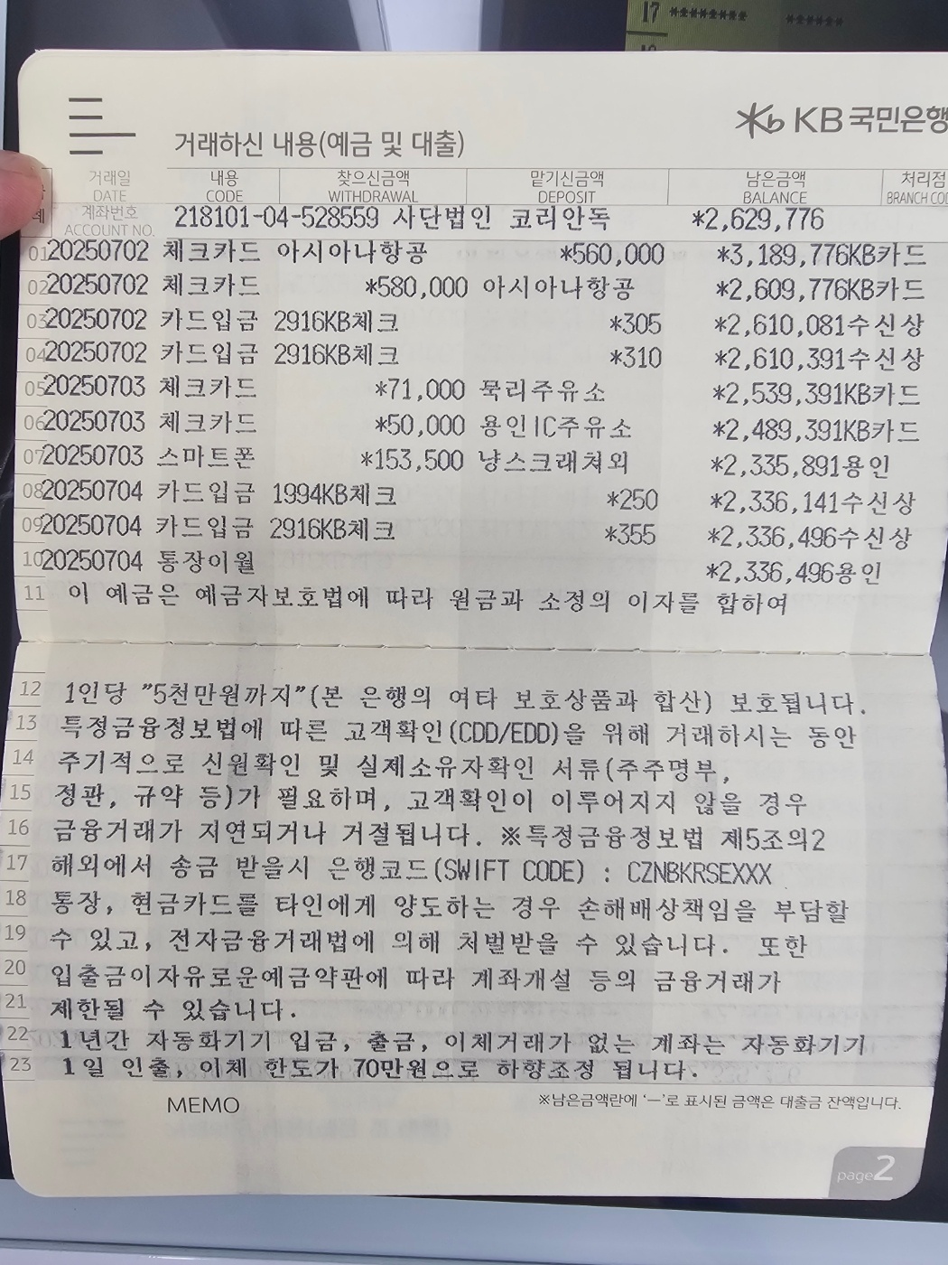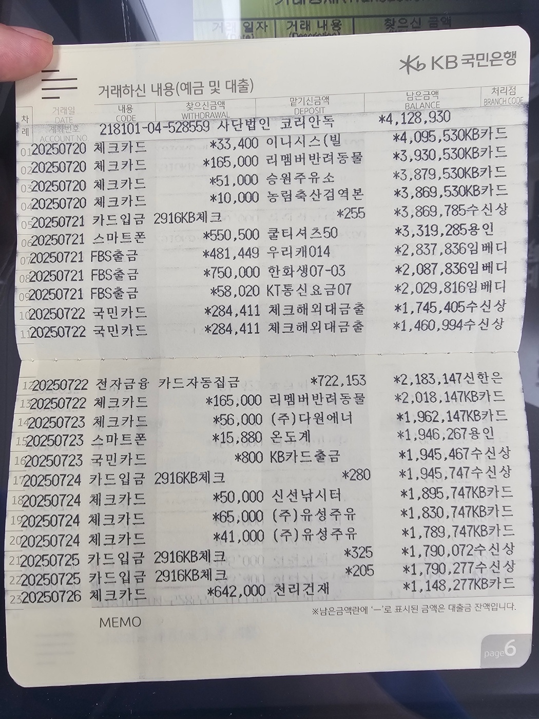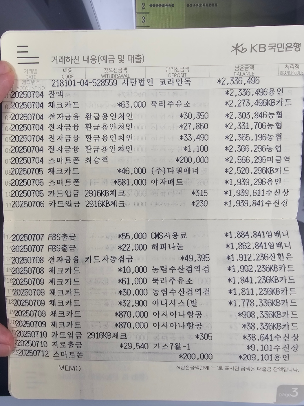사단법인 코리안독스 2025년 7월 통장내역 & 회계보고