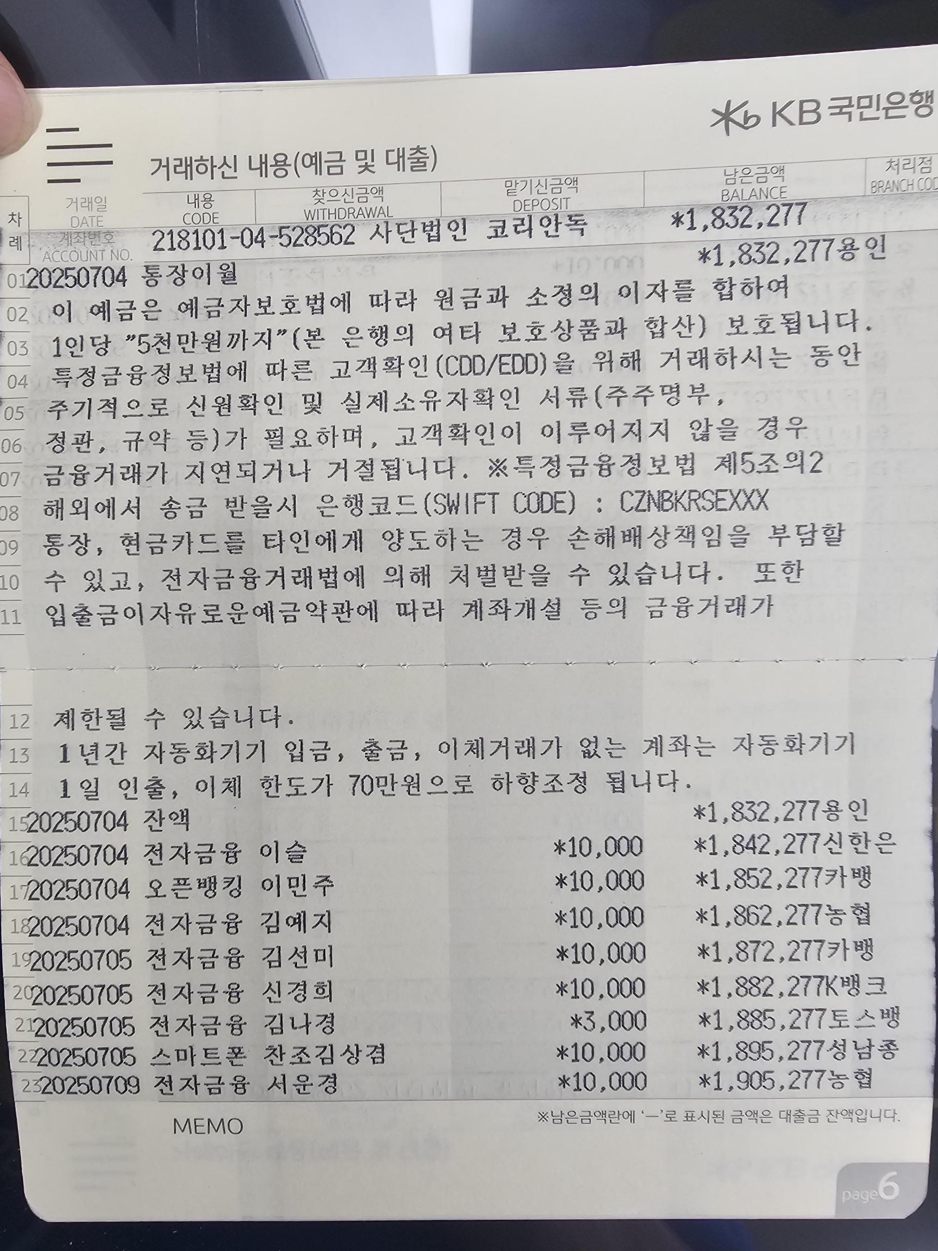 사단법인 코리안독스 2025년 6월 통장내역 & 회계보고