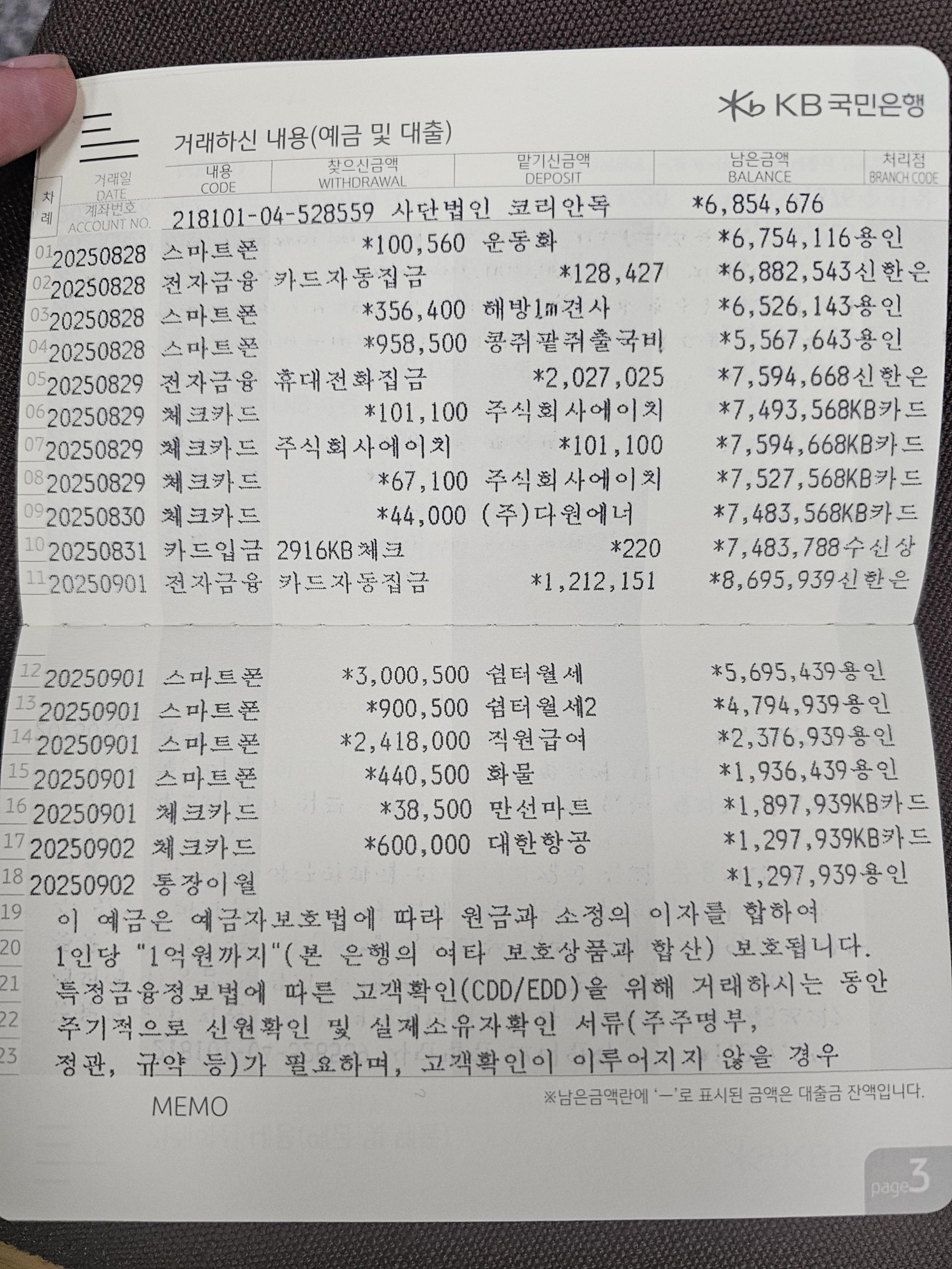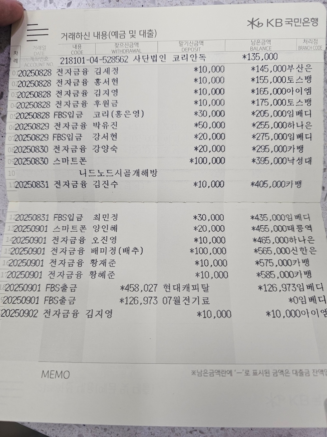 사단법인 코리안독스 2025년 9월 통장내역&회계보고