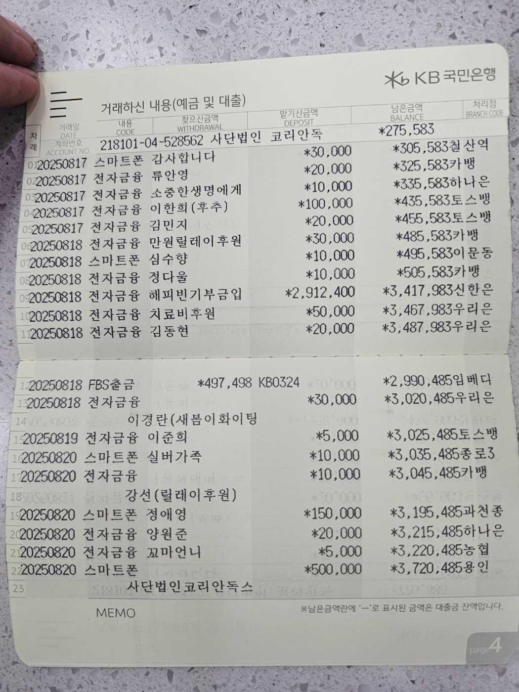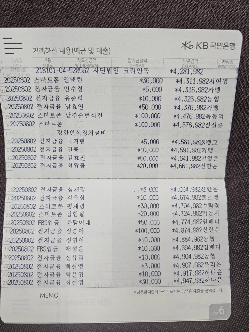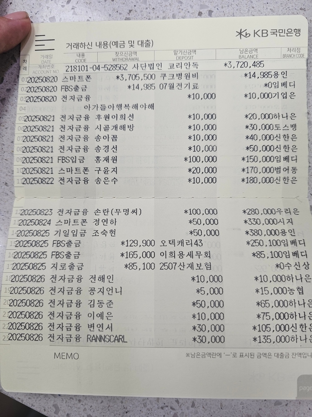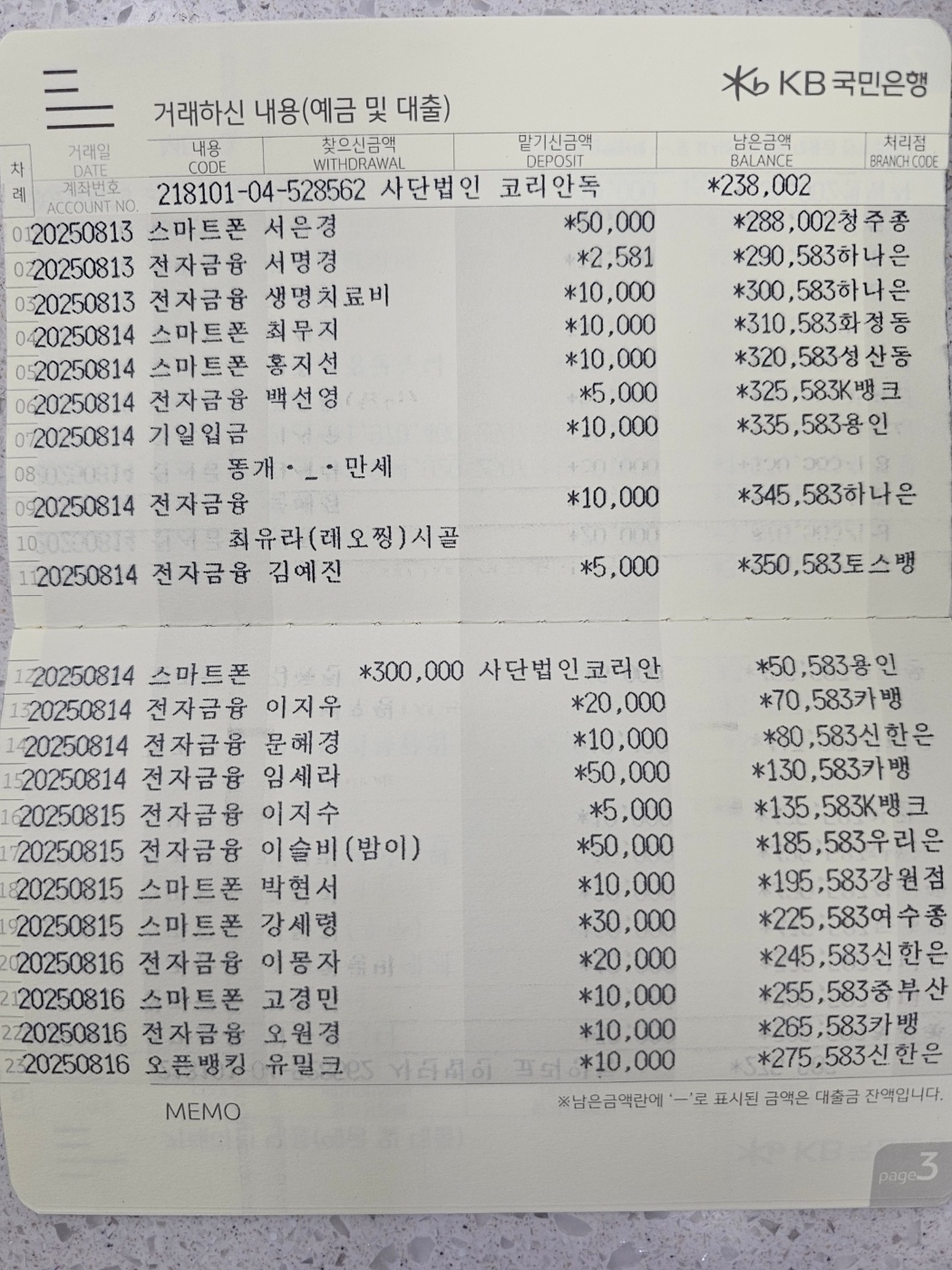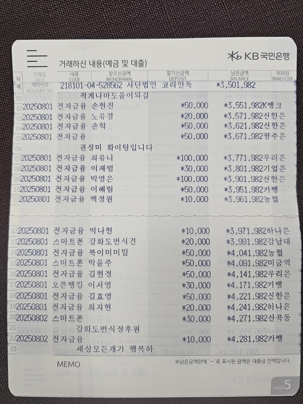 사단법인 코리안독스 2025년 8월 통장내역 & 회계보고