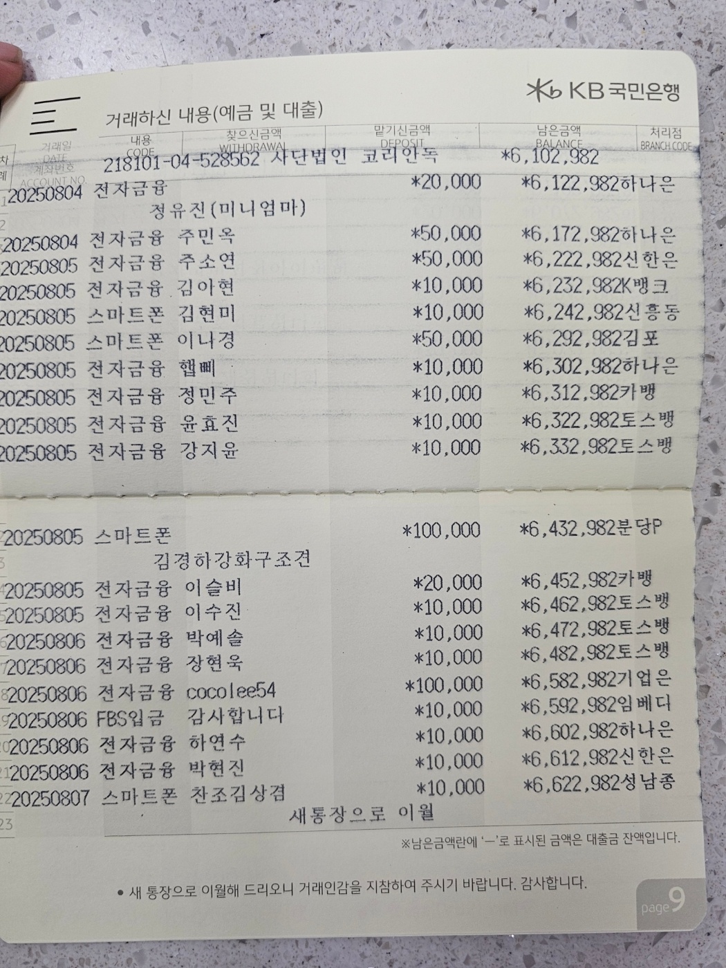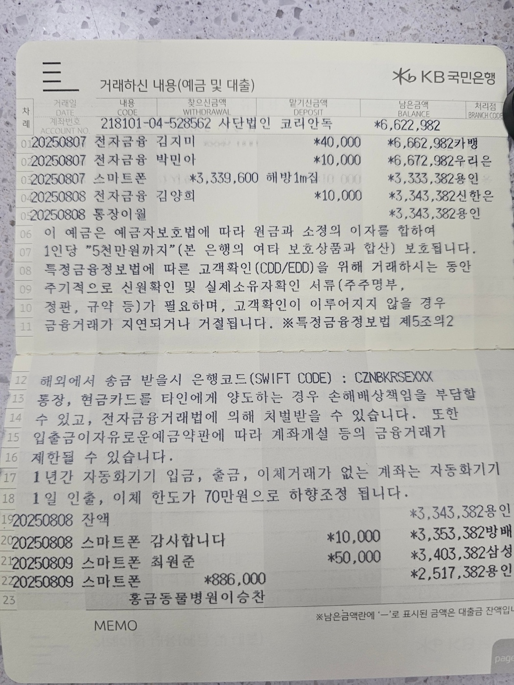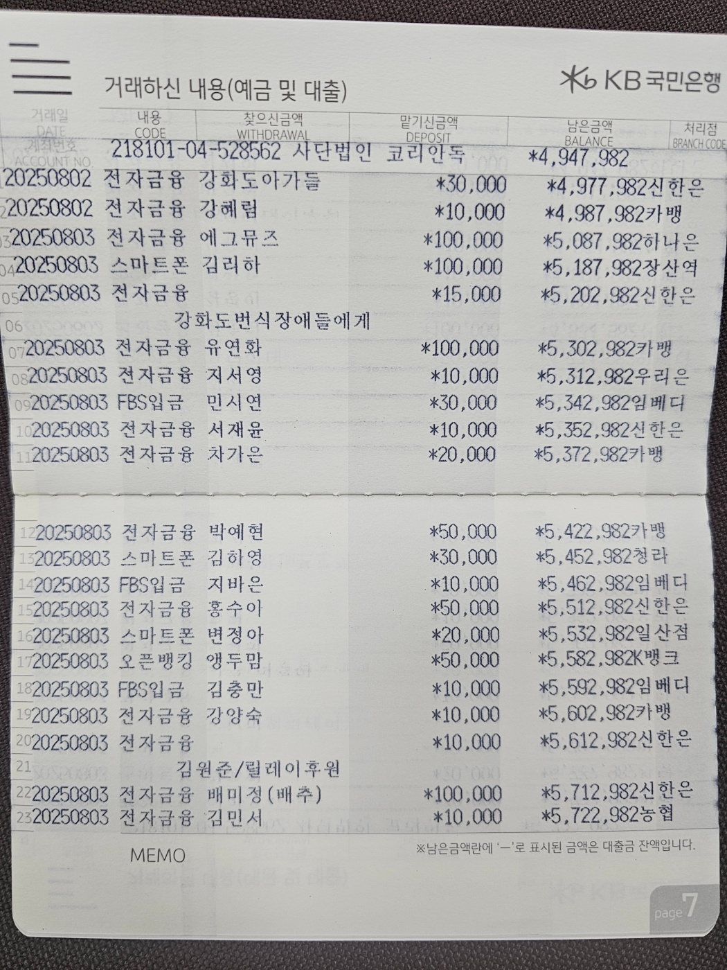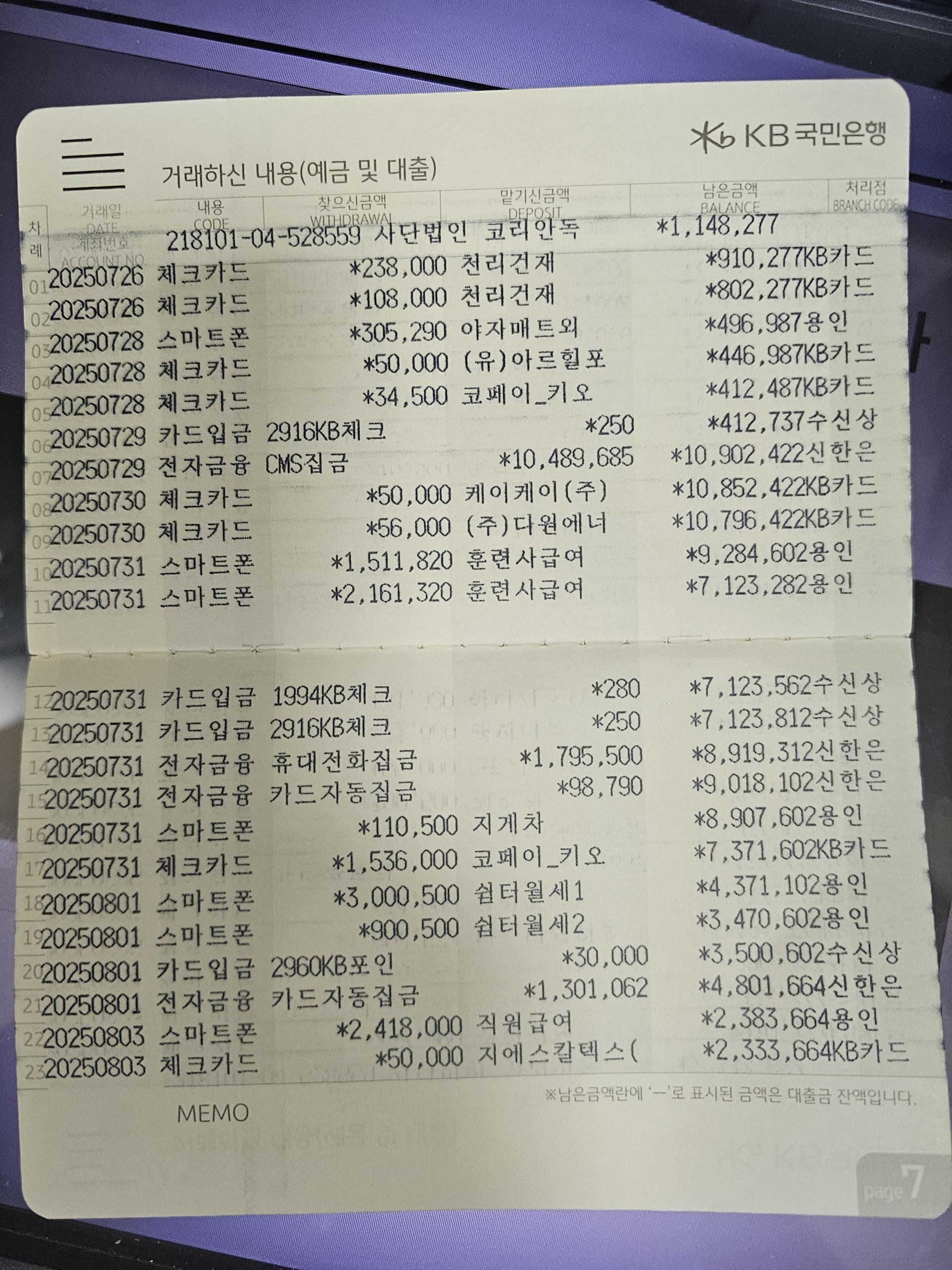 사단법인 코리안독스 2025년 7월 통장내역 & 회계보고