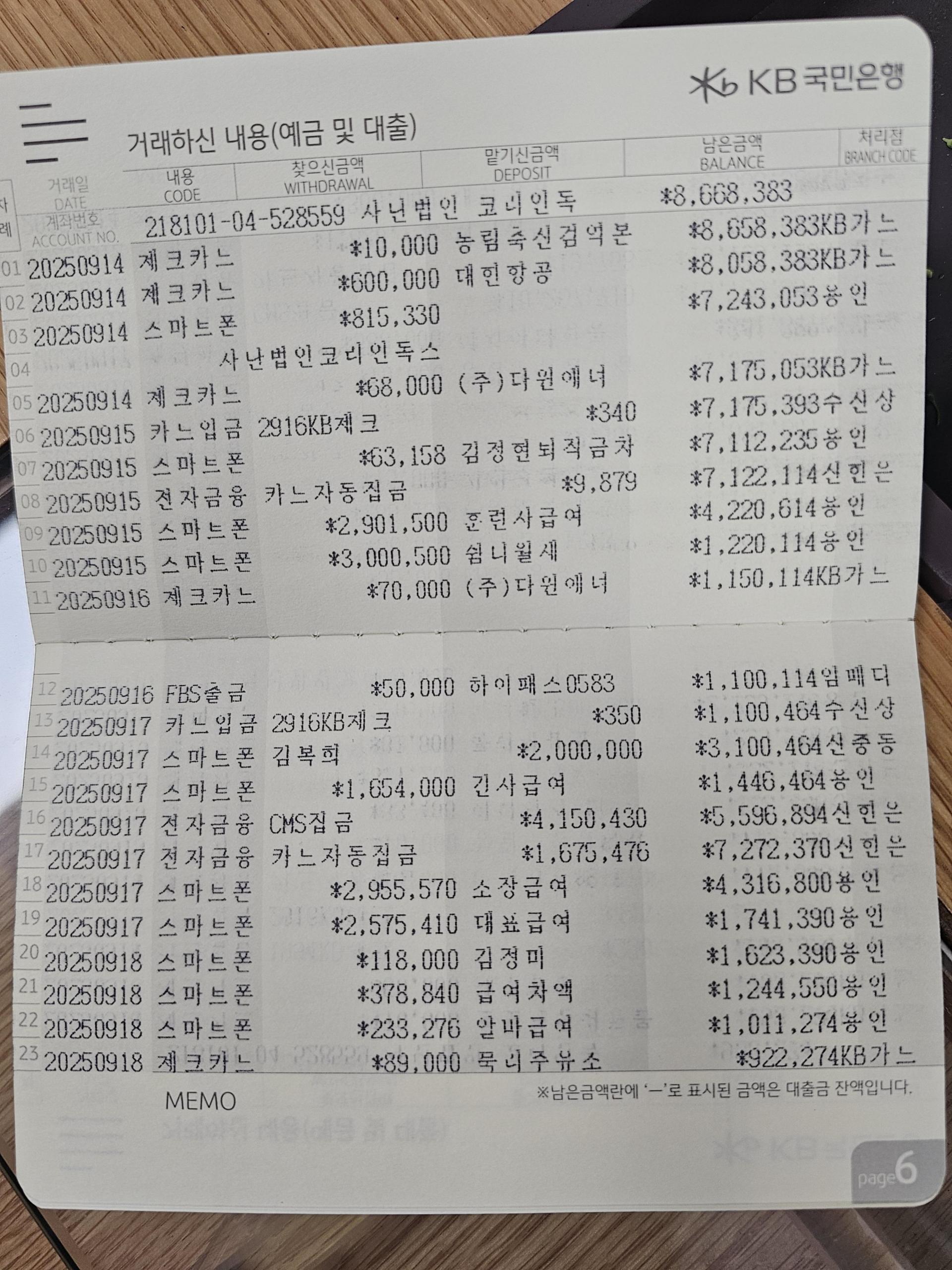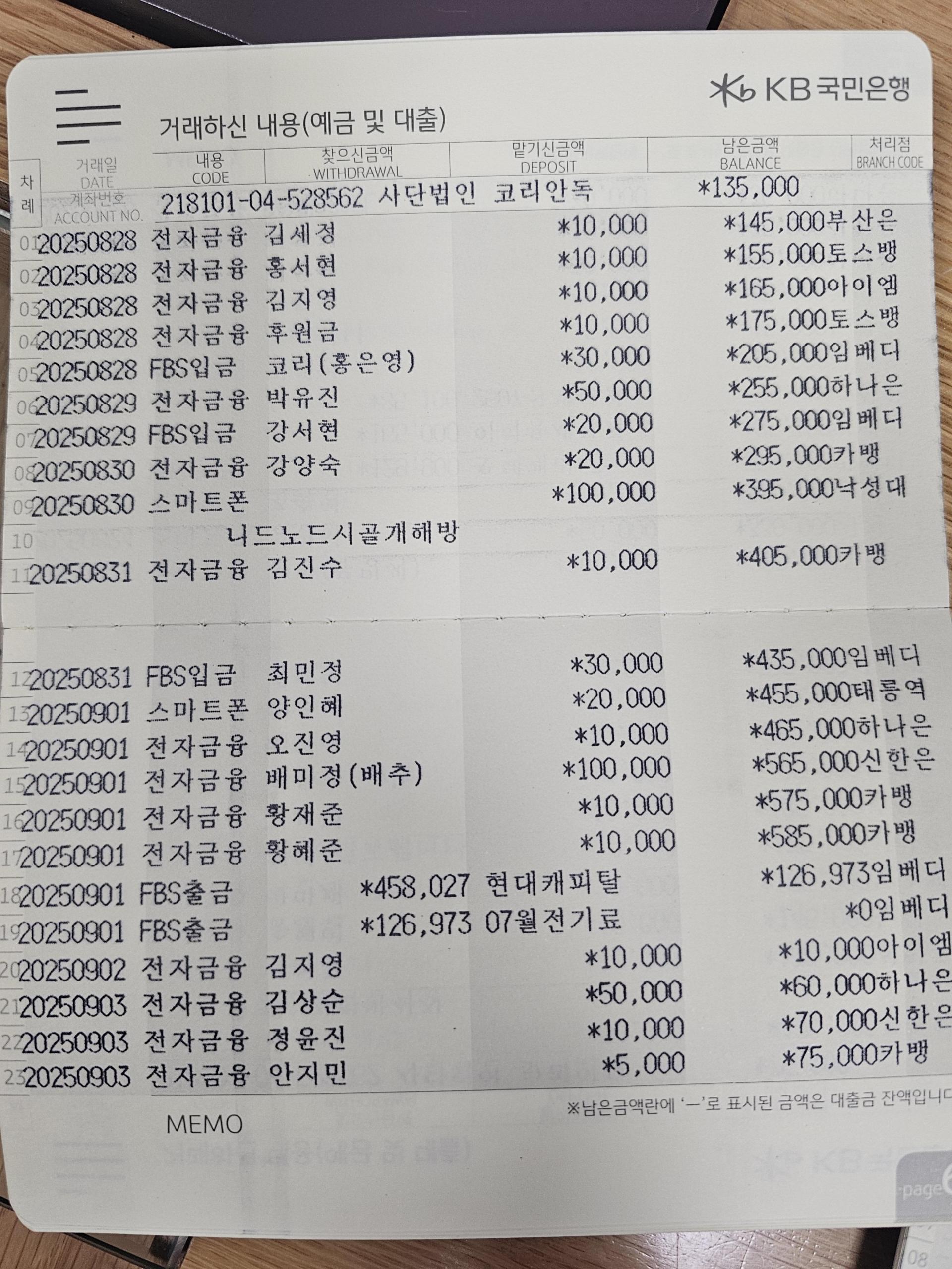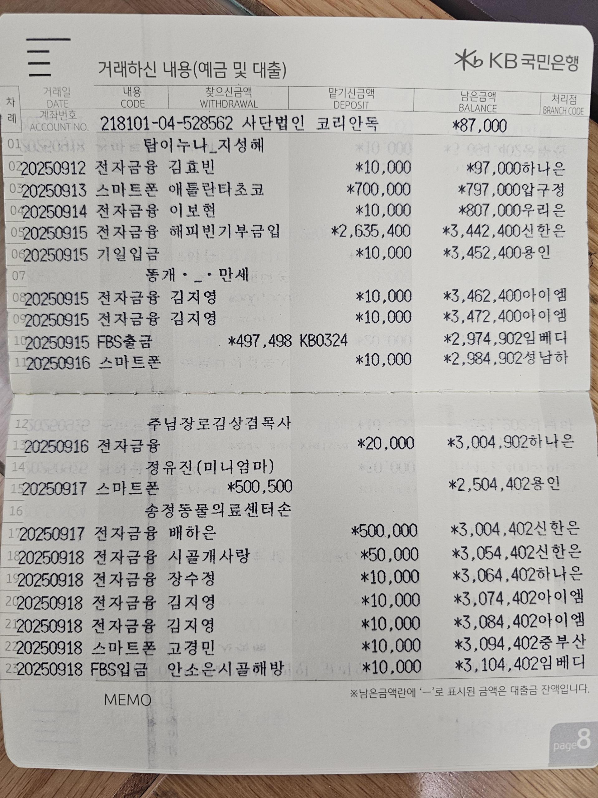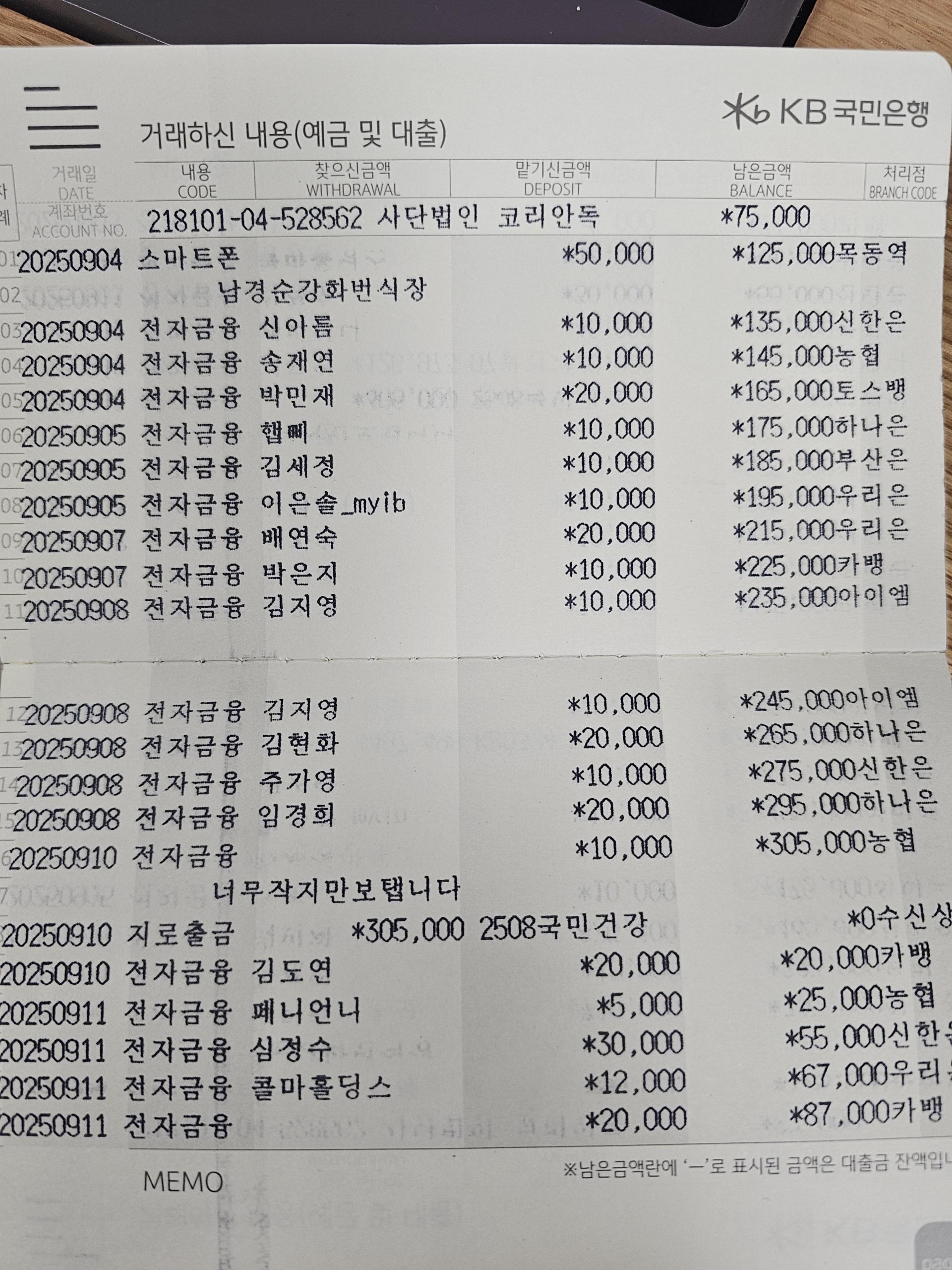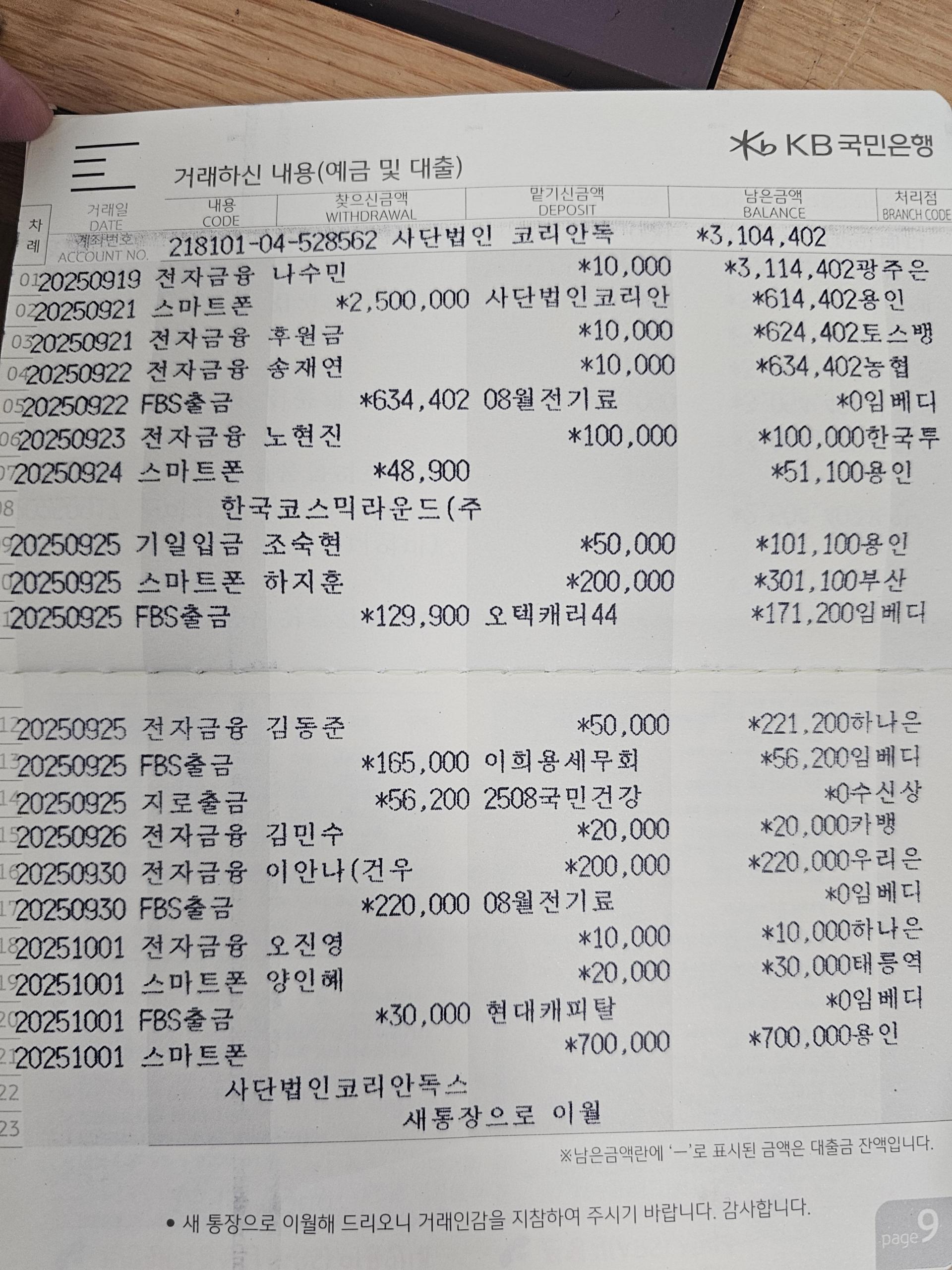 사단법인 코리안독스 2025년 9월 통장내역&회계보고