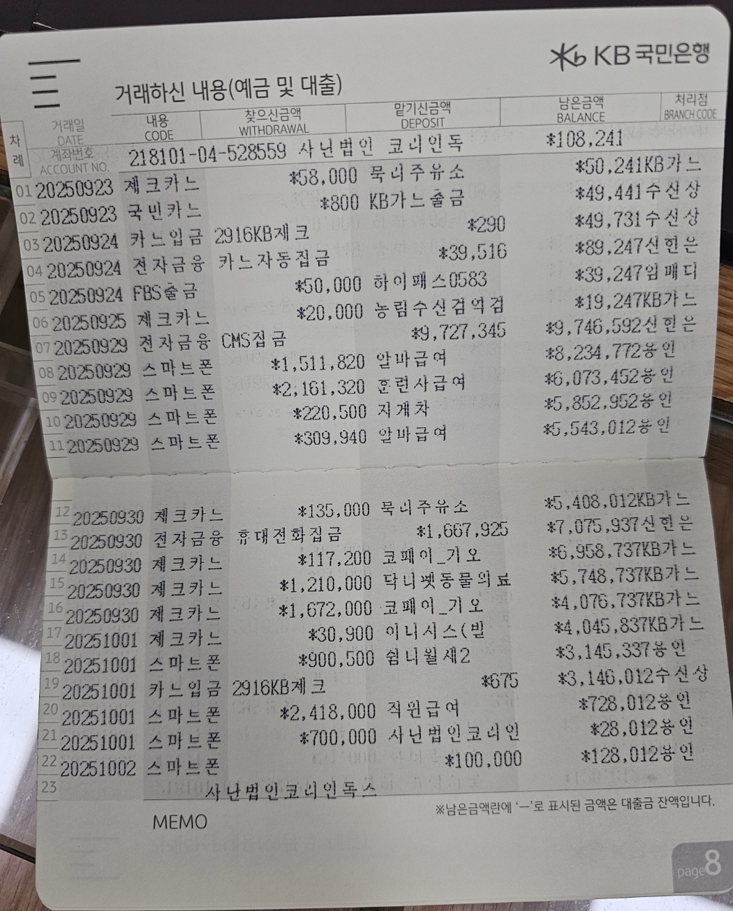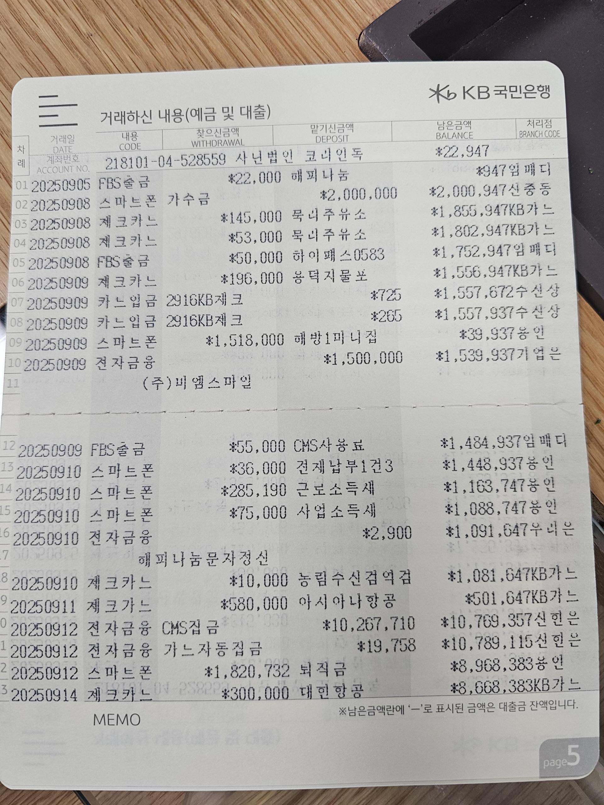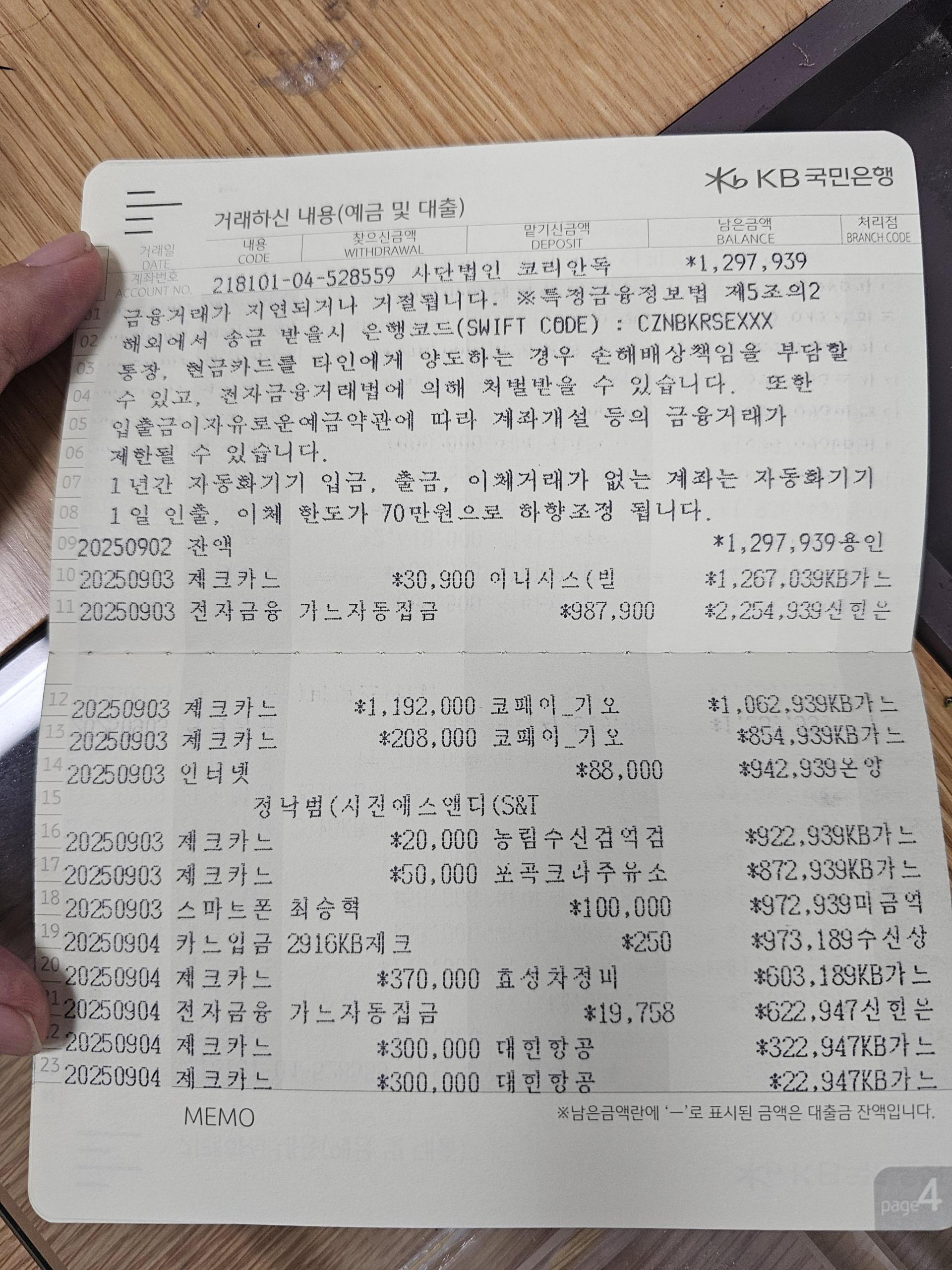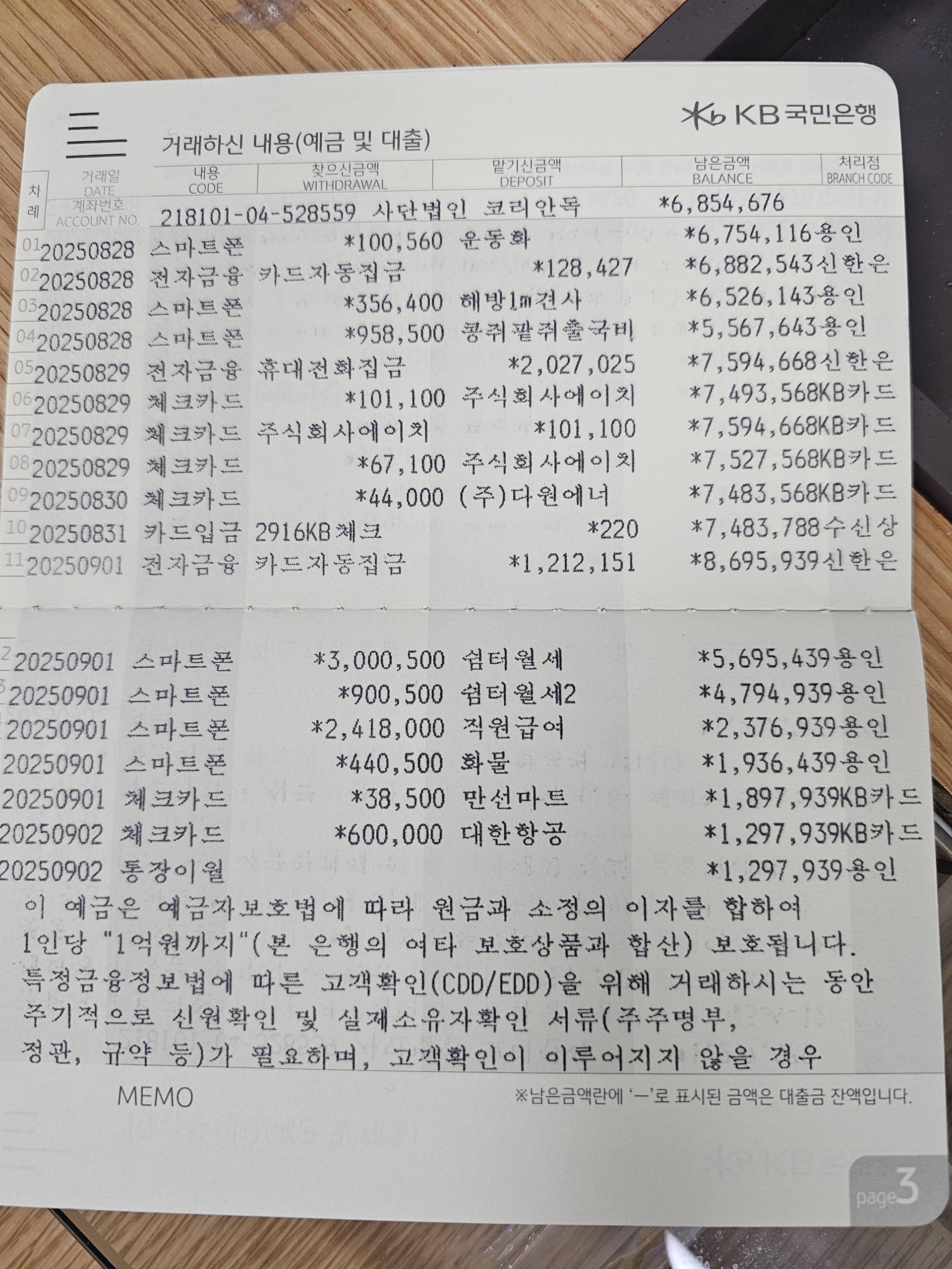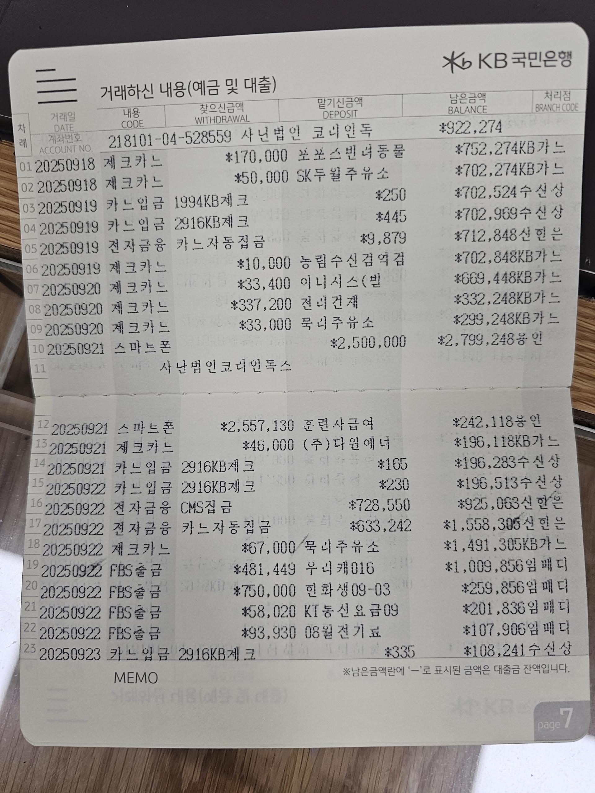 사단법인 코리안독스 2025년 9월 통장내역&회계보고